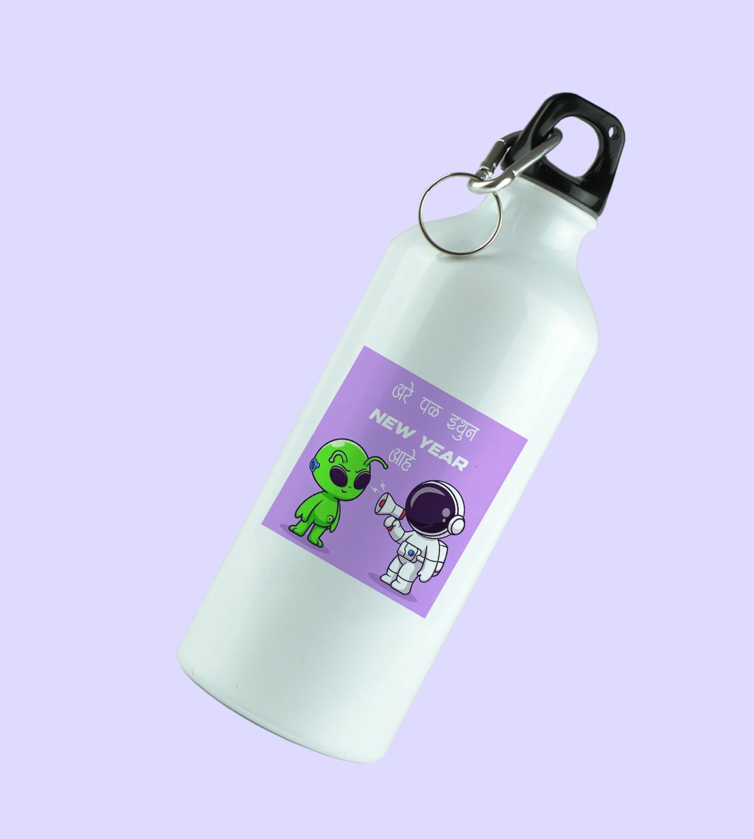 Run Away From Here, New Year Printed Aluminium Water Bottle