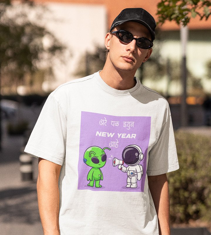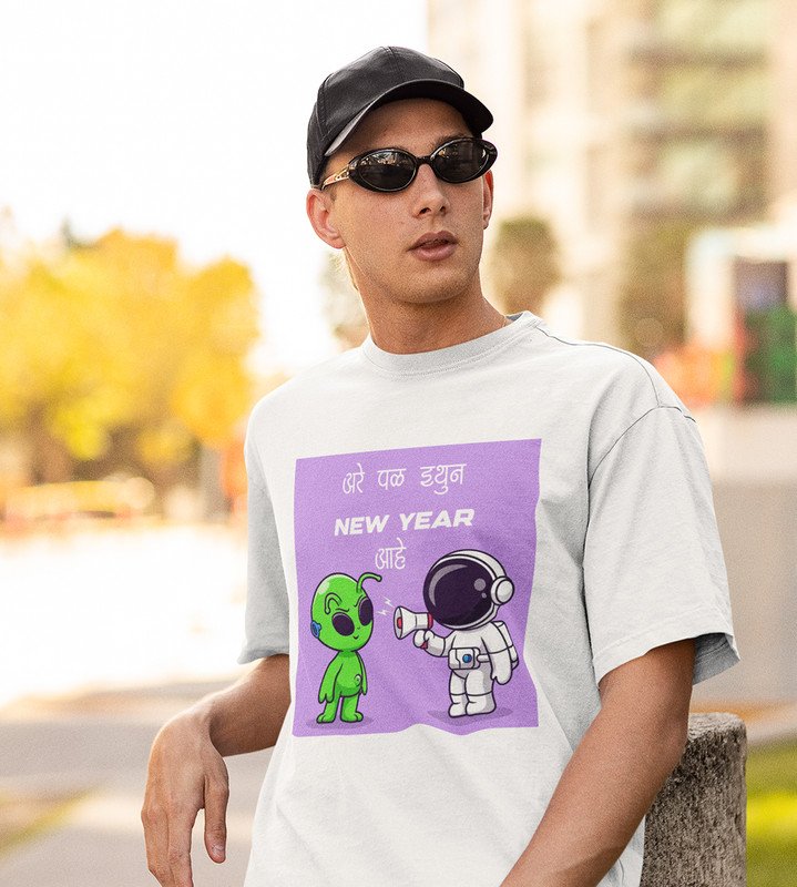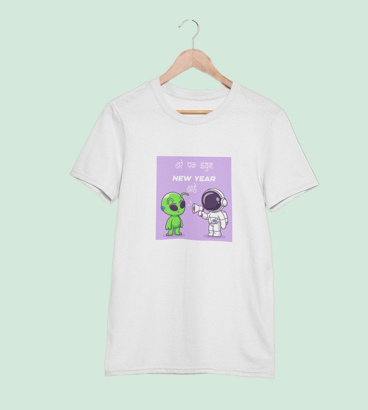 Run Away From Here White New Year Printed T-shirt For Mens