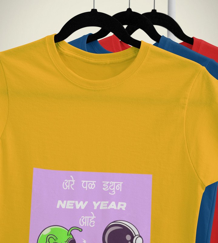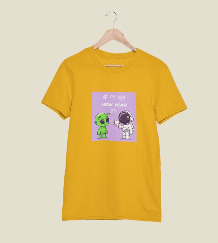 Run Away From Here Yellow New Year Printed T-shirt For Mens