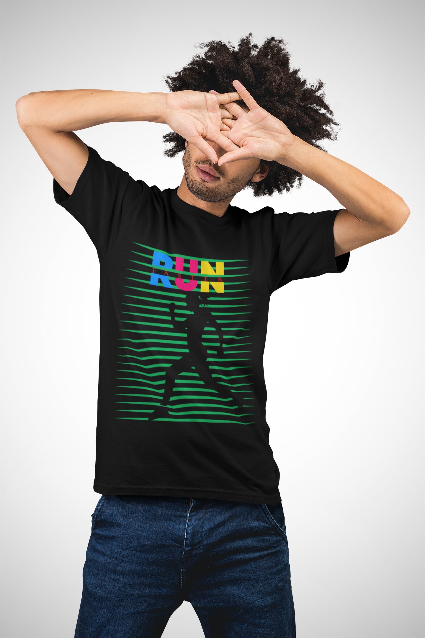 Run - Green Strips - Black - Printed - Sports cool Men's T-shirt