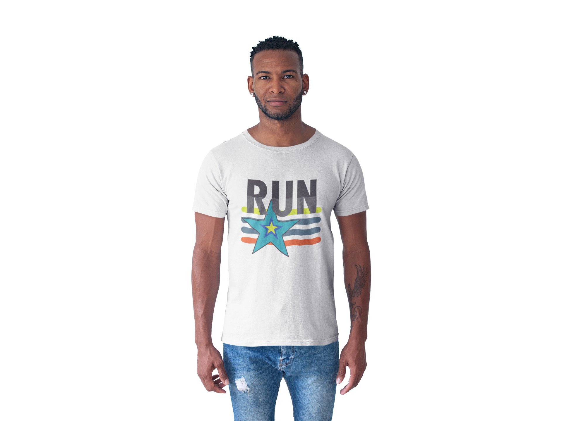 Run - Text with a star - White - Printed - Sports cool Men's T-shirt