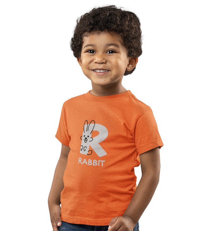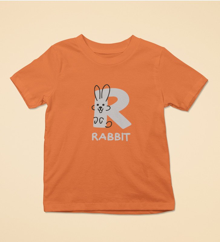 Running Rabit, Printed Cotton Tshirt (Orange) for Boys