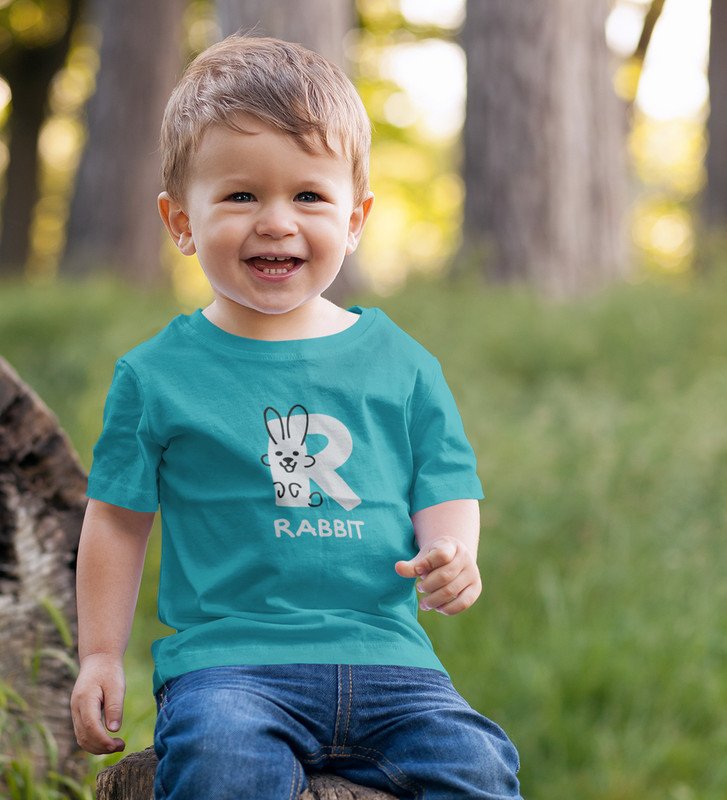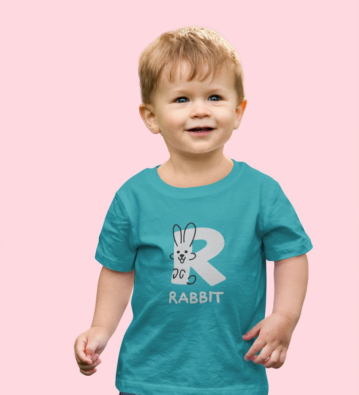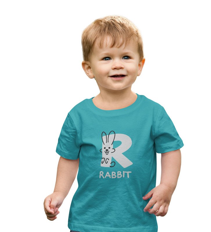Running Rabit, Printed Cotton tshirt (teal) for Boys