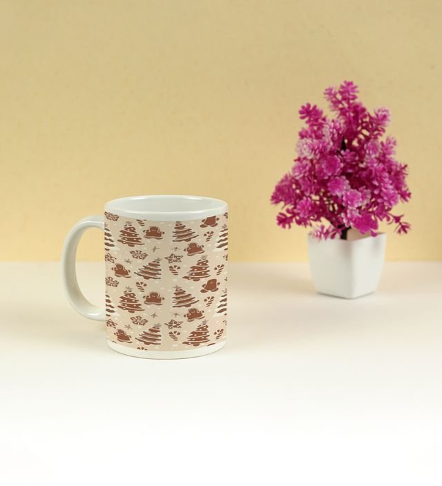 Rustic White and Brown Christmas Icons Full Printed Coffee Mug