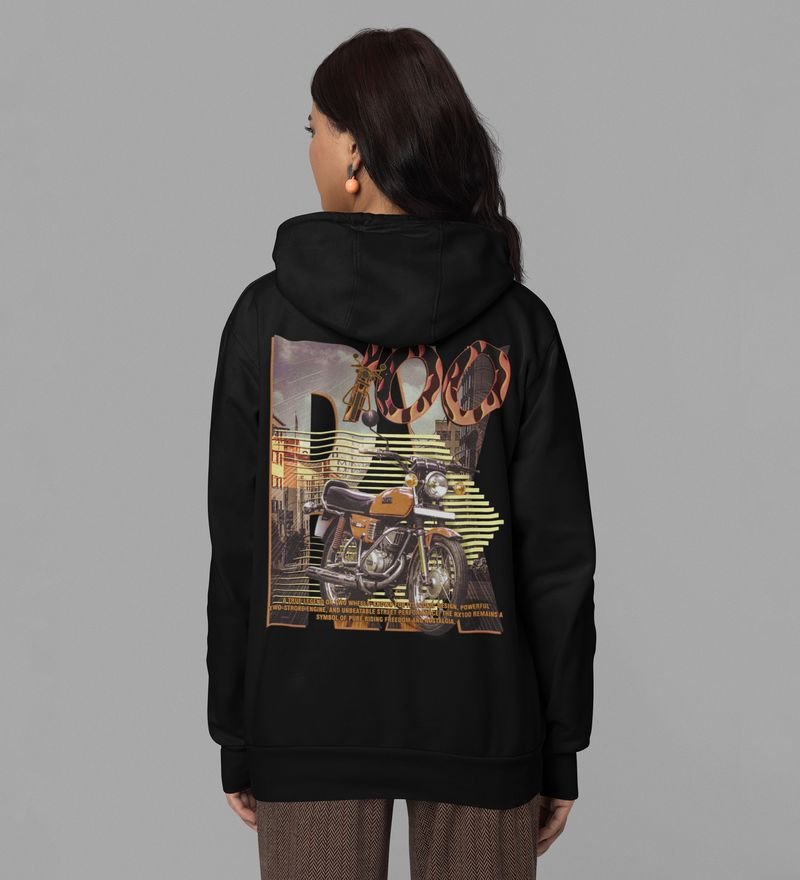 RX 100: A Legend Reborn on the Road Printed Black Hoodie for Women