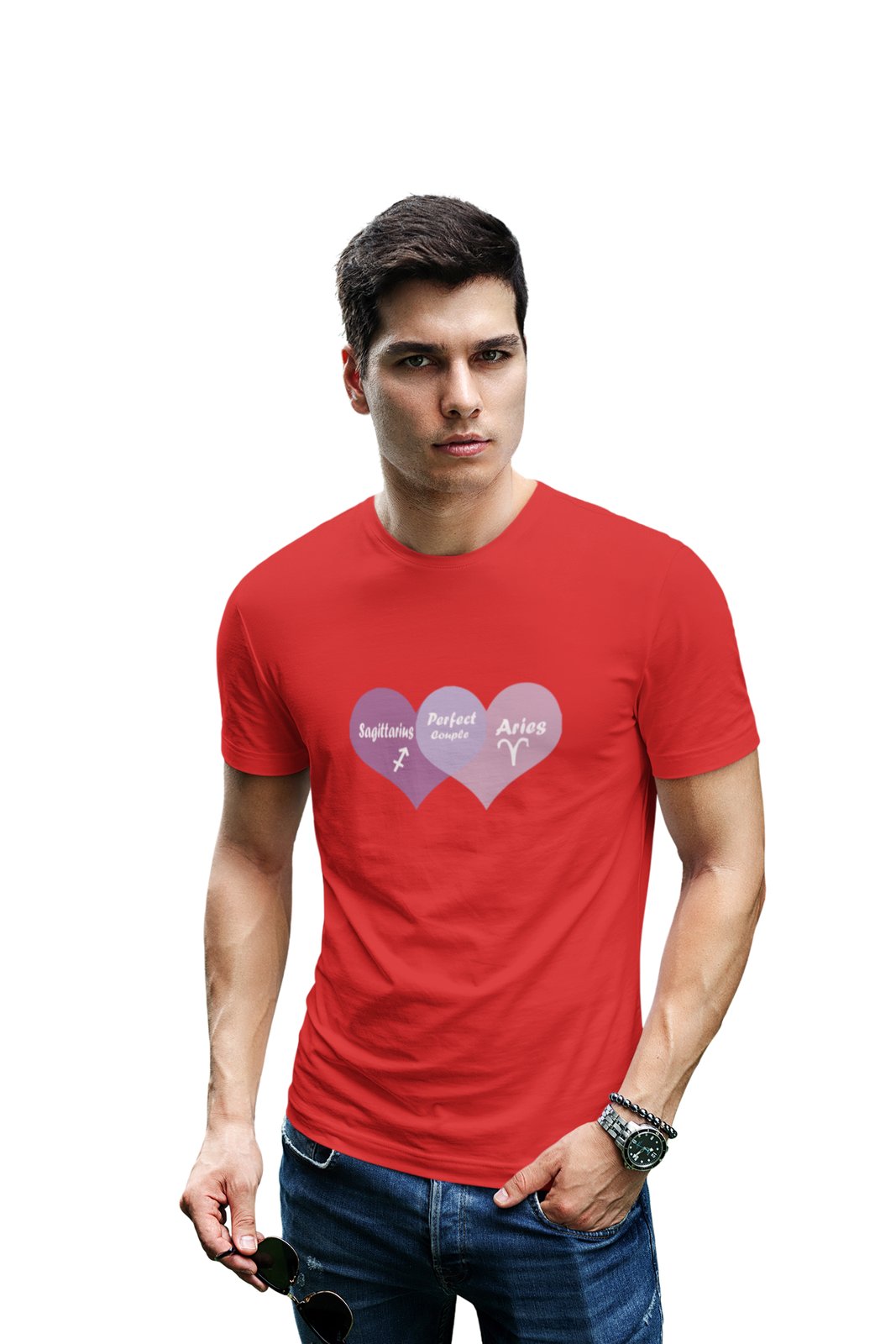 Sagittarius, Aries, Perfect couple (Red T) - Printed Zodiac Sign Tshirts - Made especially for astrology lovers people
