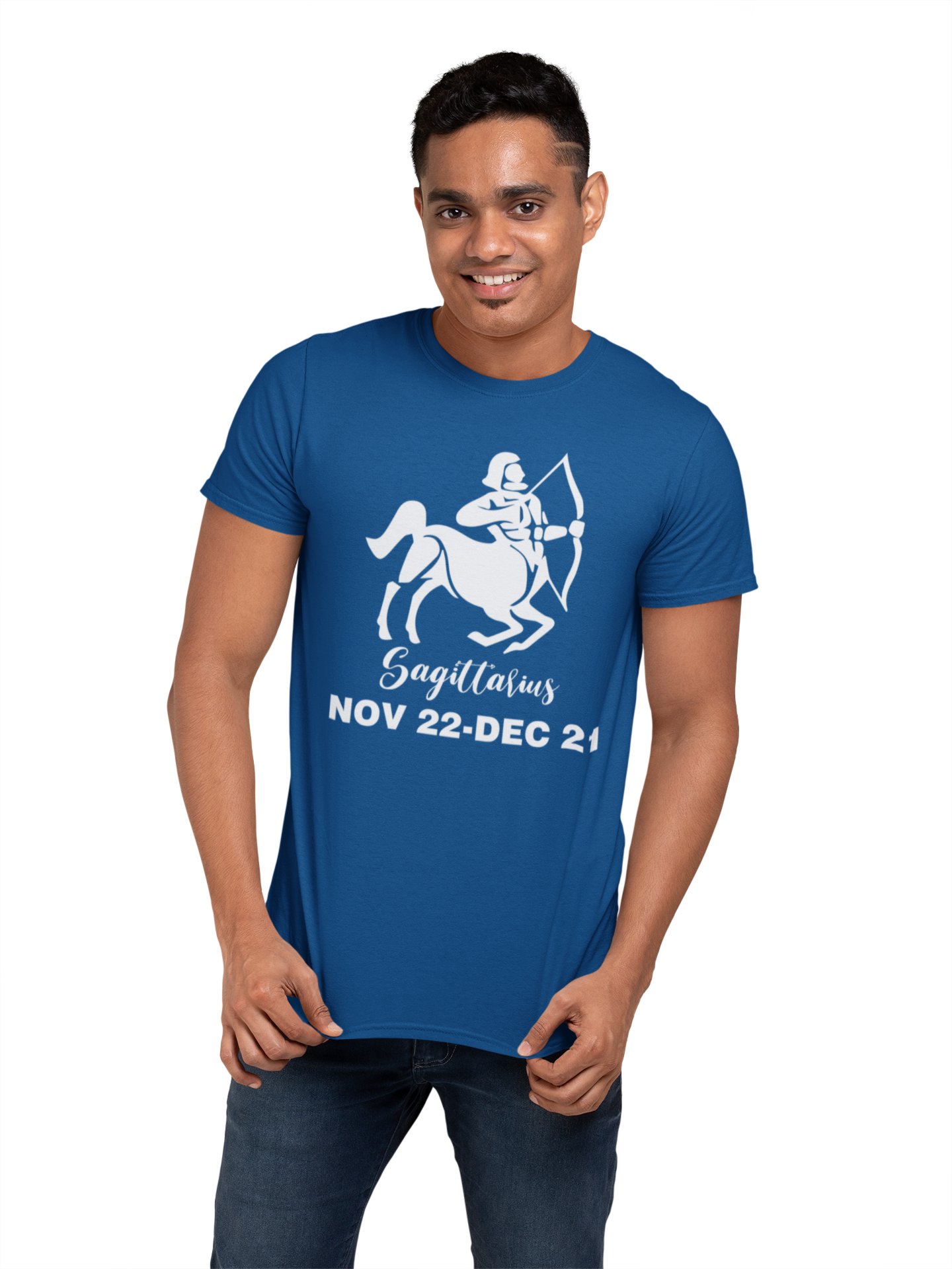 Sagittarius, Nov 22-Dec 21 (BG White)(Blue T) - Printed Zodiac Sign Tshirts - Made especially for astrology lovers people