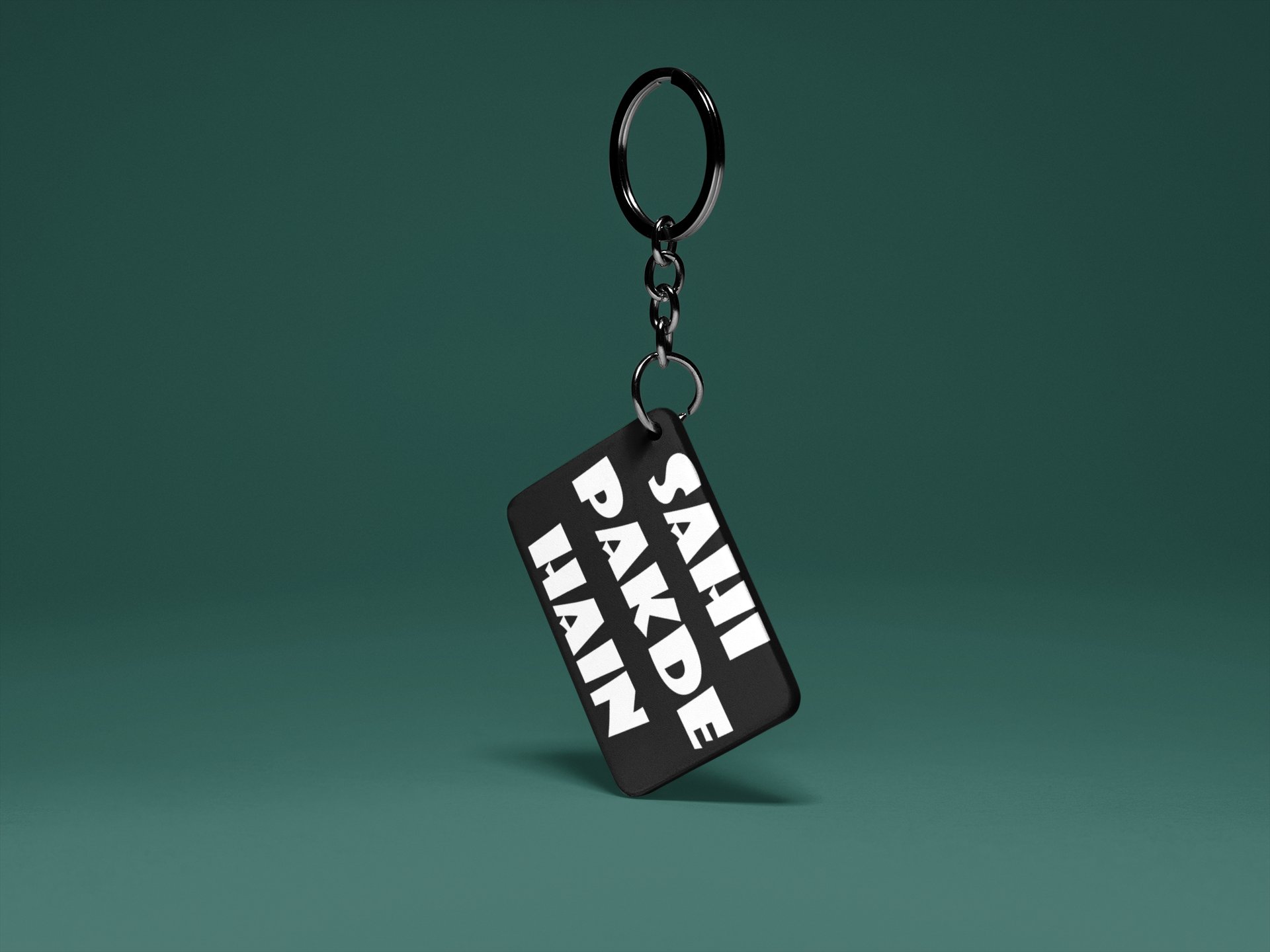 Sahi Pakde Hai - Black - Designable Dialogues Keychain (Combo Set Of 2)