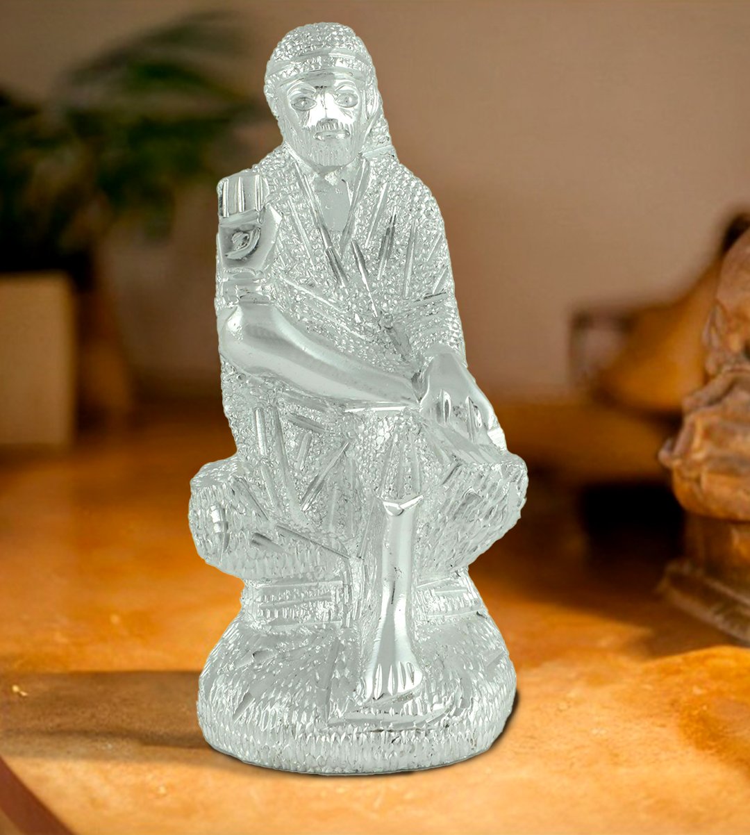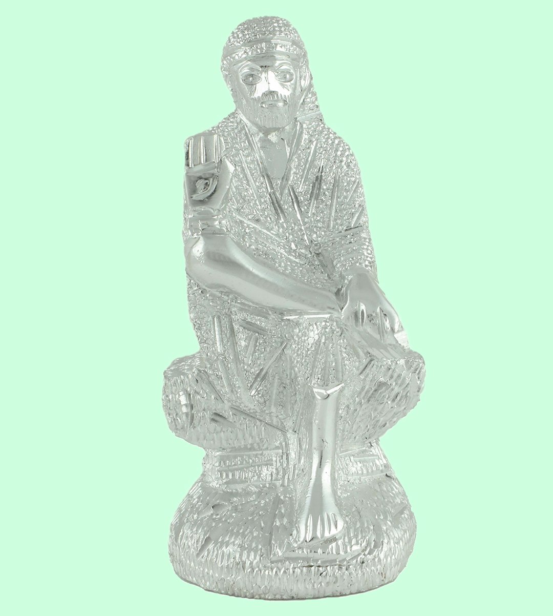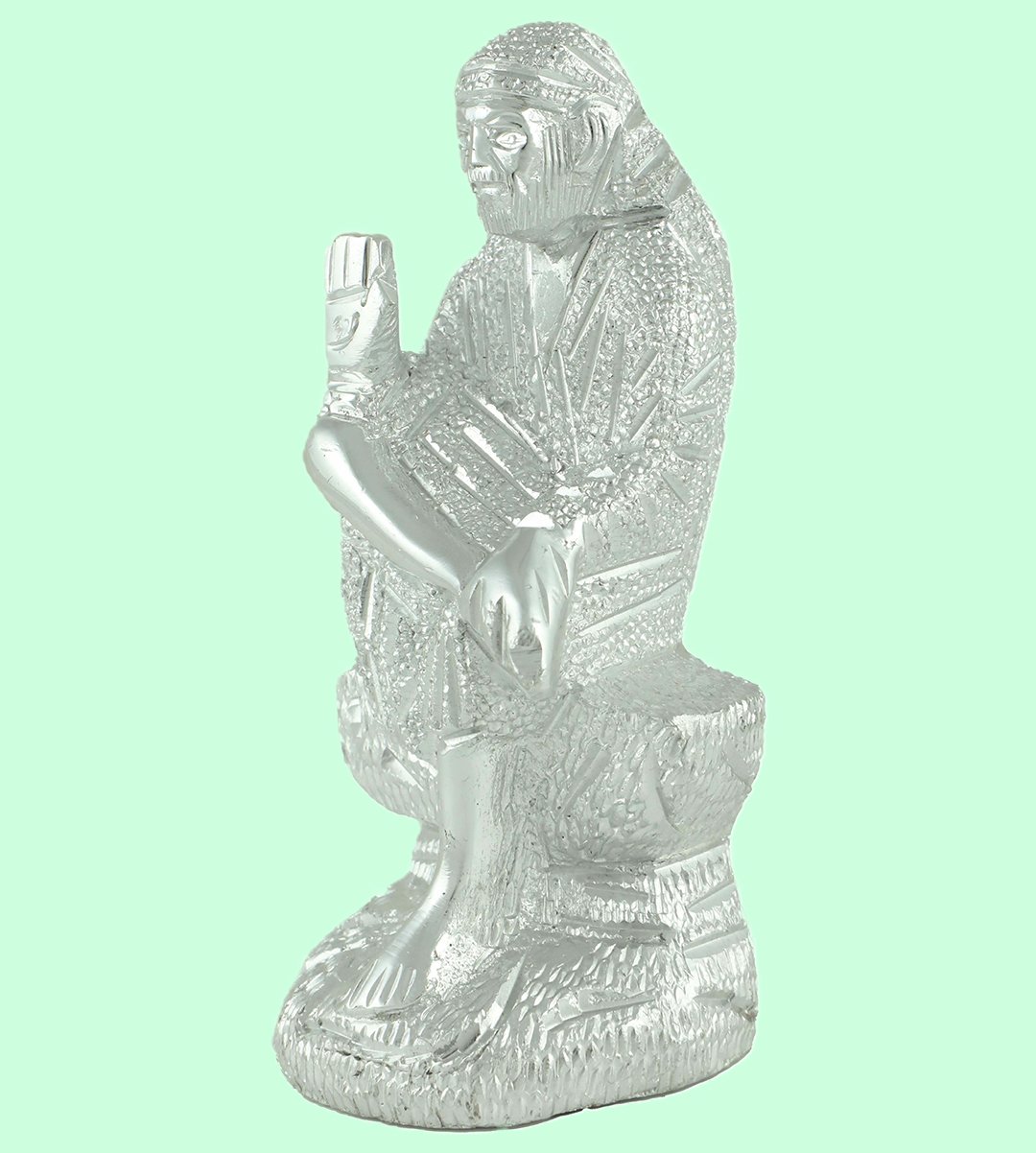 Silver saibaba idol/ figurine/ murti for home, office and puja room