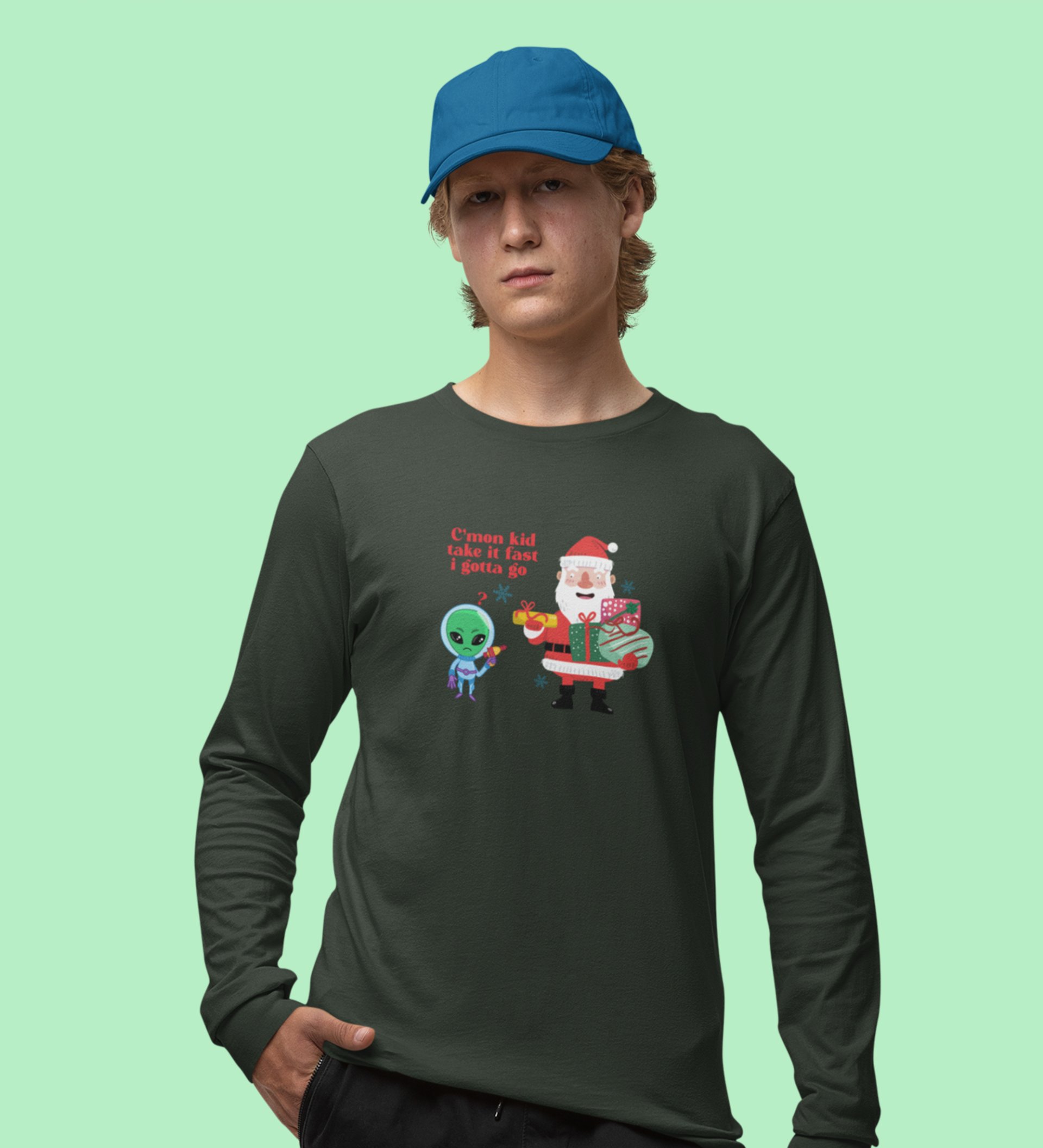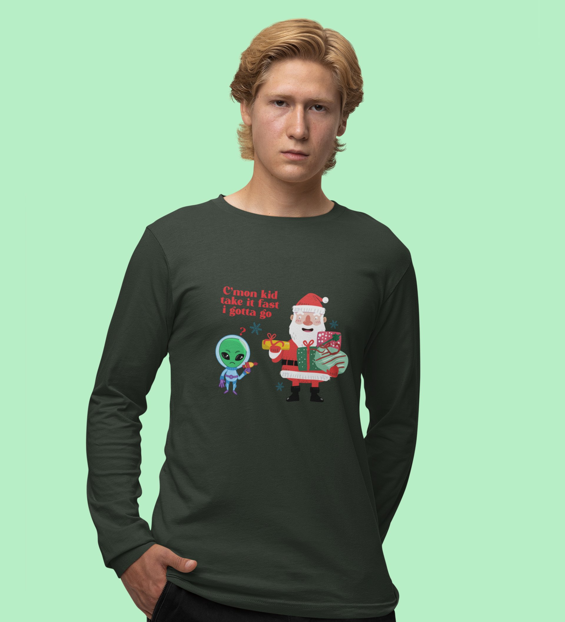 Santa & Alien's Talk: Best DesignerFull Sleeve T-shirt Green Best Gift For Boys Girls