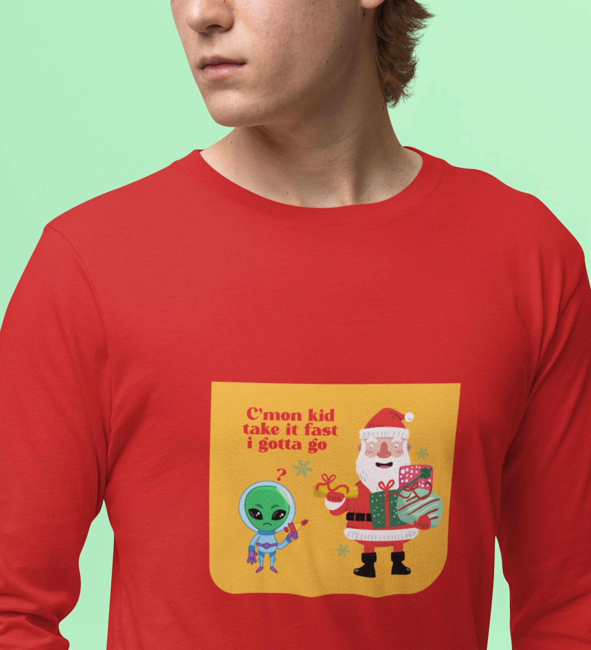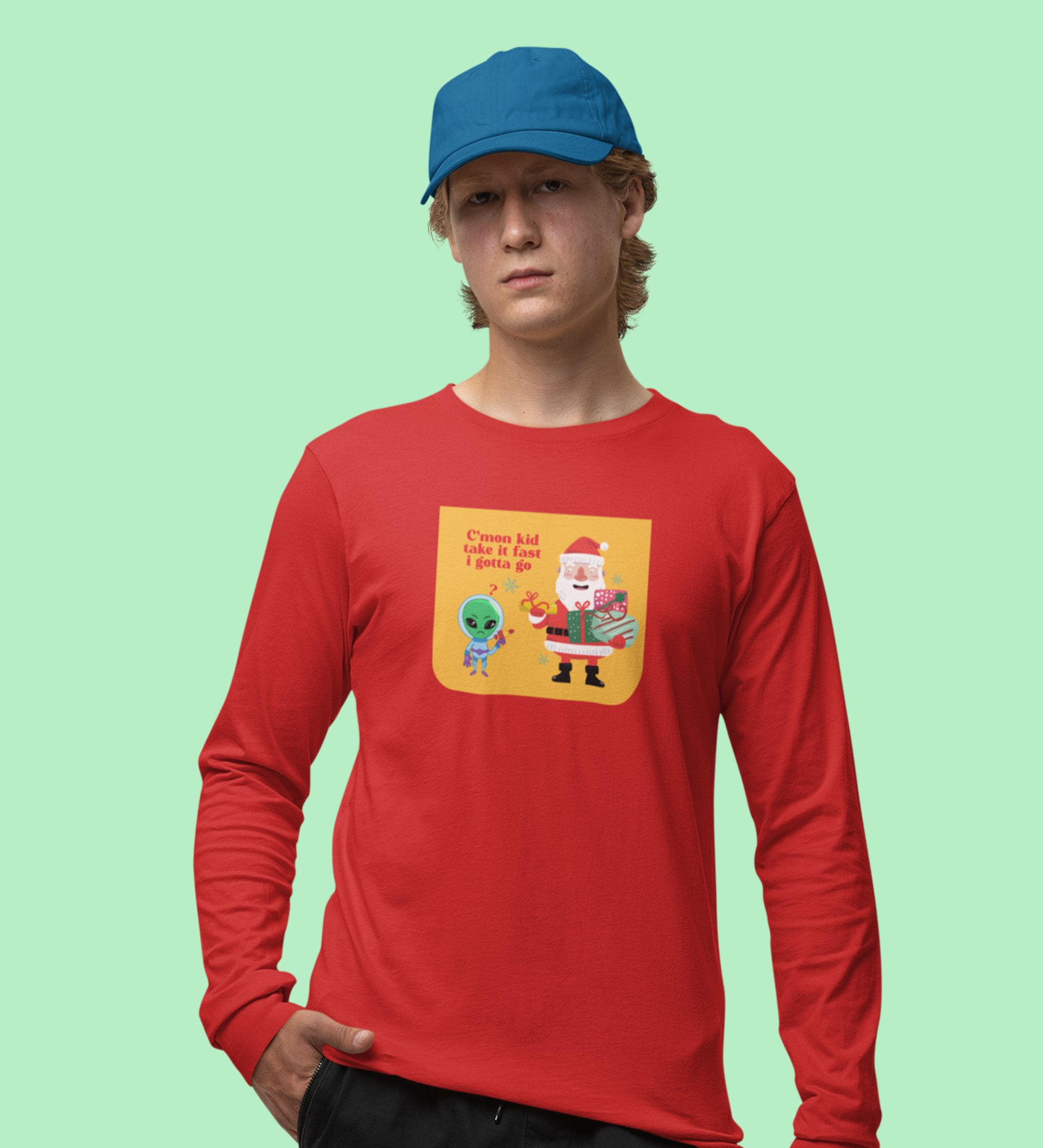 Santa & Alien's Talk: Best DesignerFull Sleeve T-shirt Red Best Gift For Boys Girls