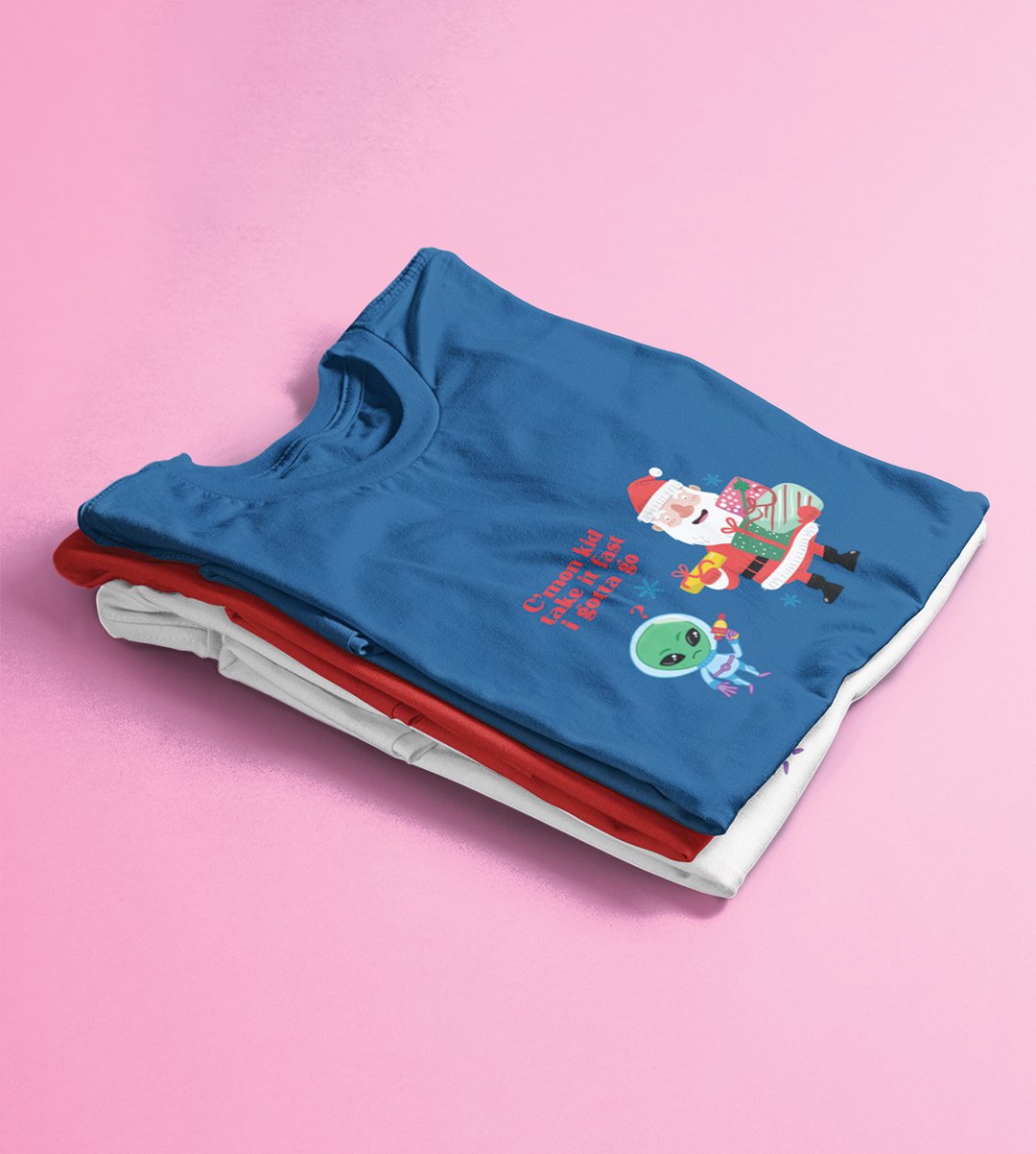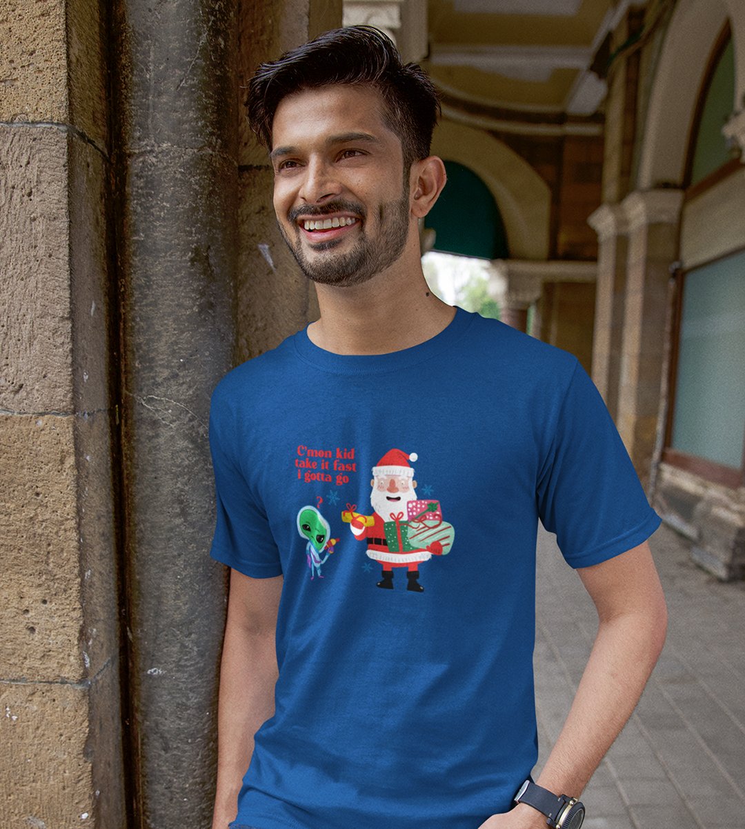 Santa And Alien's Talk : Elegantly Printed T-shirt (Blue) Best Gift For Boys Girls