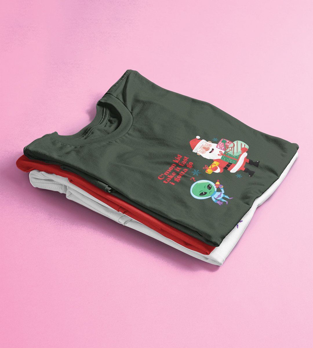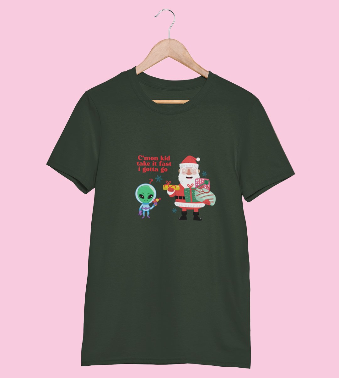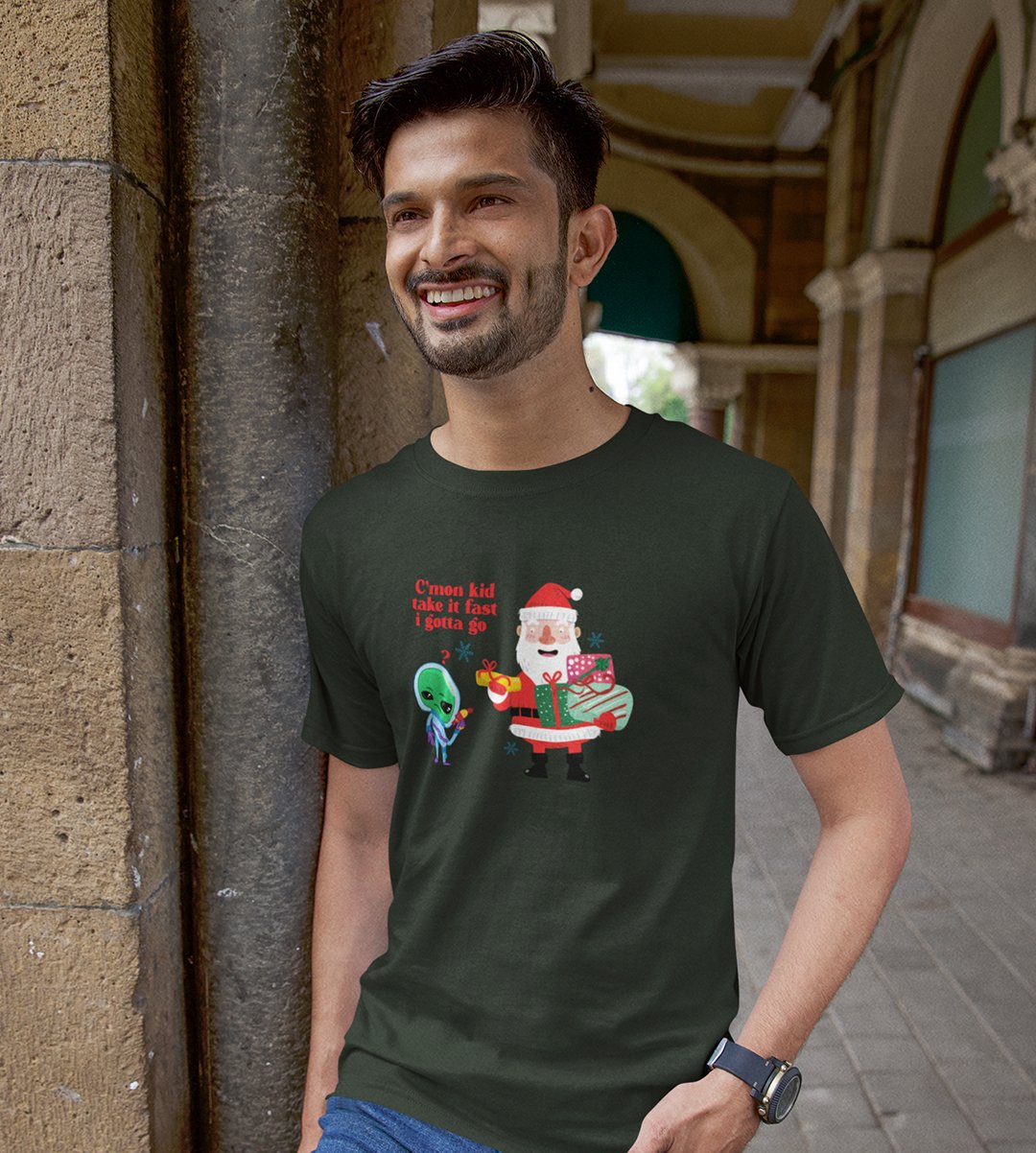 Santa And Alien's Talk : Elegantly Printed T-shirt (Green) Best Gift For Boys Girls