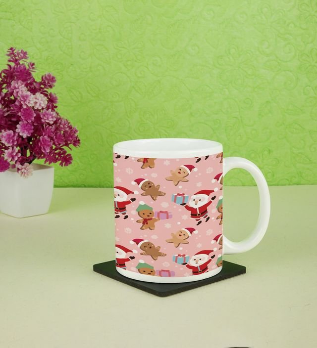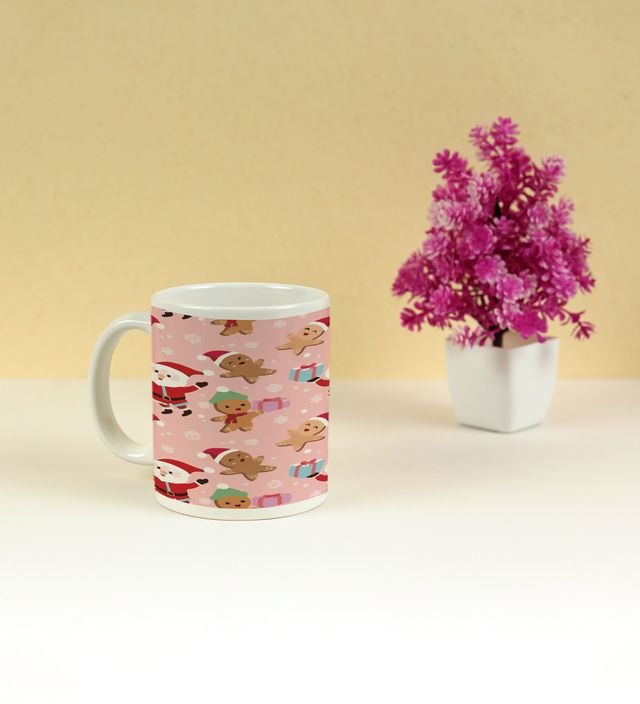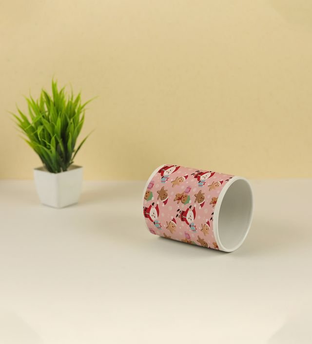 Santa and Festive Characters Spreading Christmas Cheer Full Printed Coffee Mug