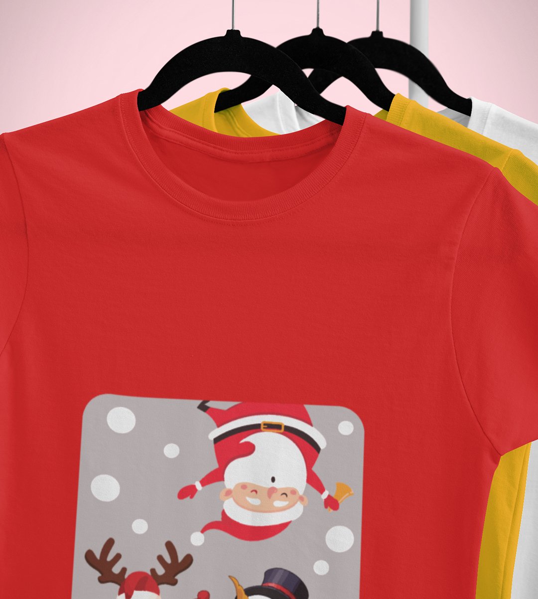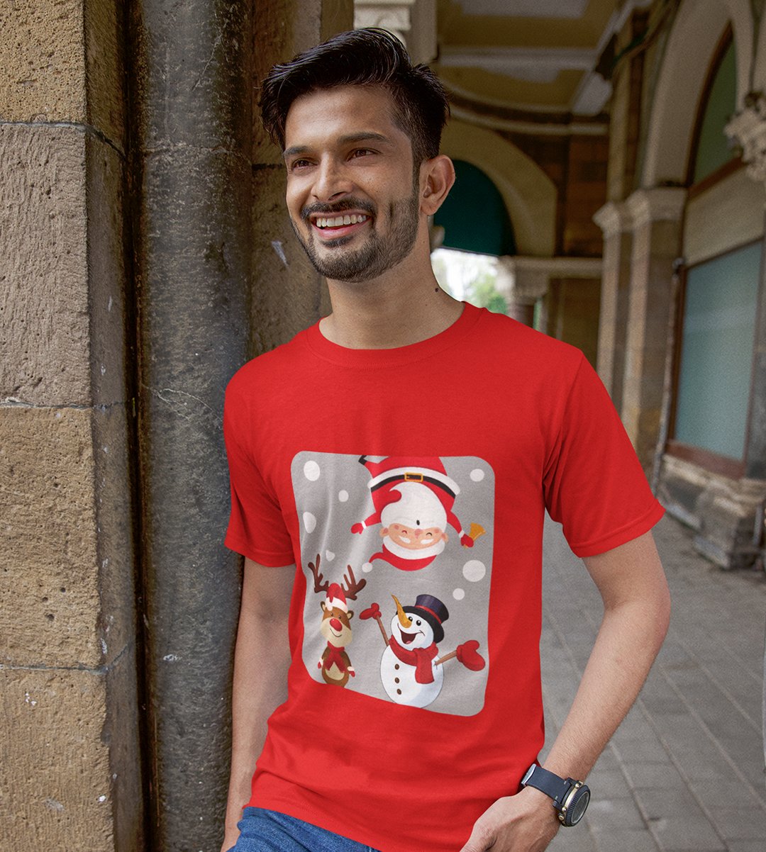 Santa And His Friends: Unwrap Joy with(Red) T-shirt- Durable Printed for Festive Gifts For Boys Girls