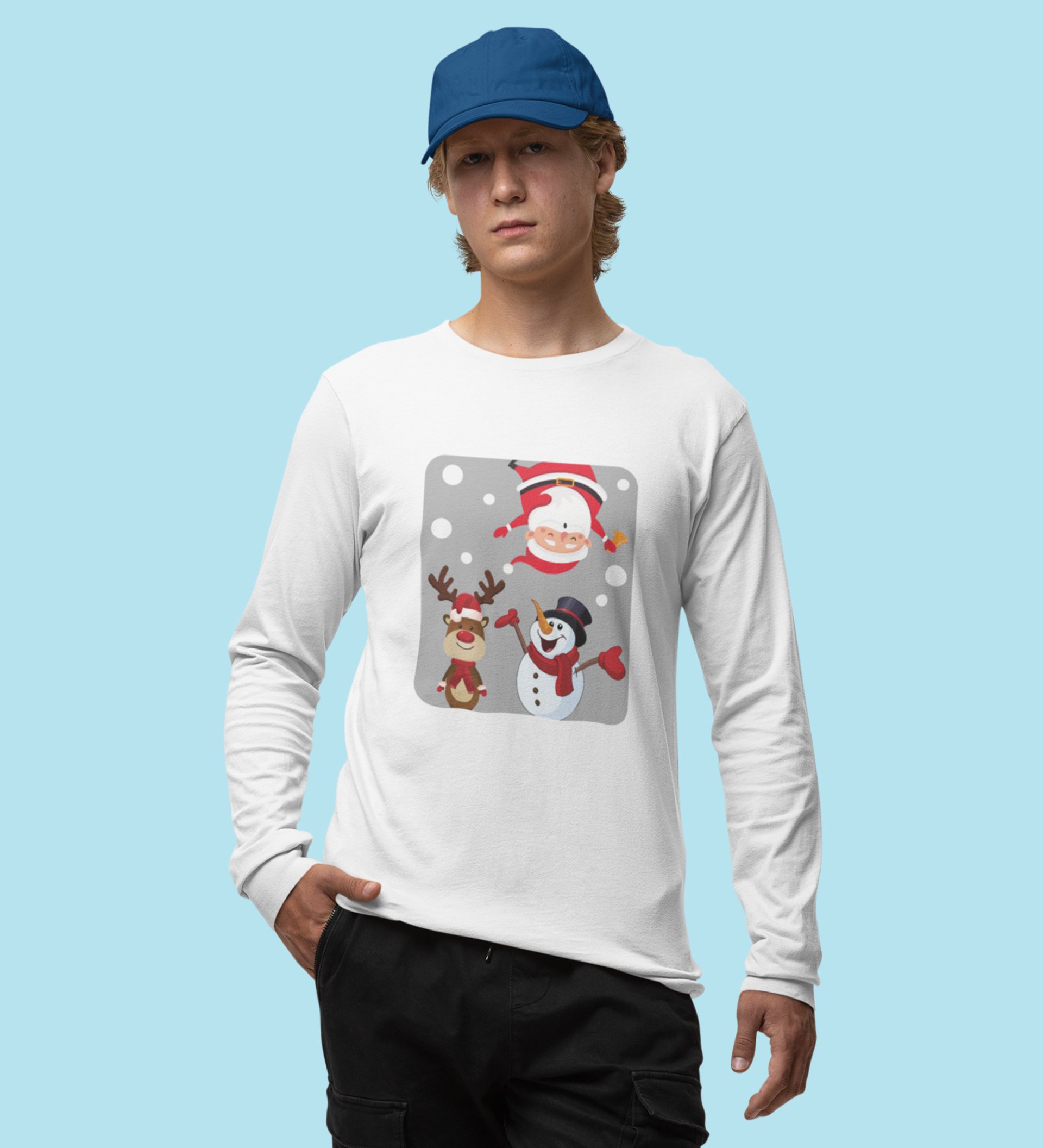 Santa And His Friends: Unwrap Joy withWhite Full Sleeve T-shirt- Durable Design for Festive Gifts For Boys Girls
