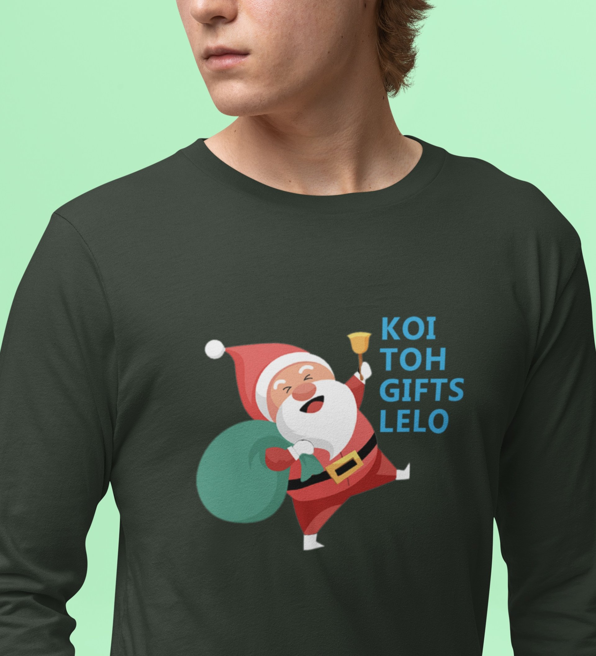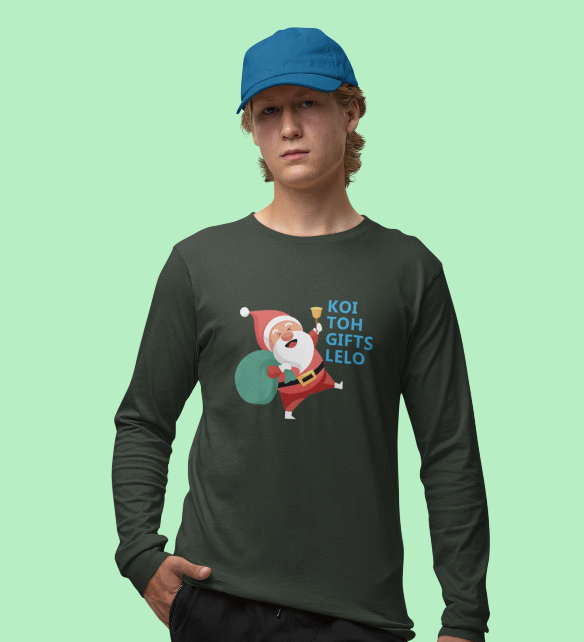 Santa Distributing Gifts: Best DesignerFull Sleeve T-shirt For Christmas GreenMost Liked Gift For Boys Girls