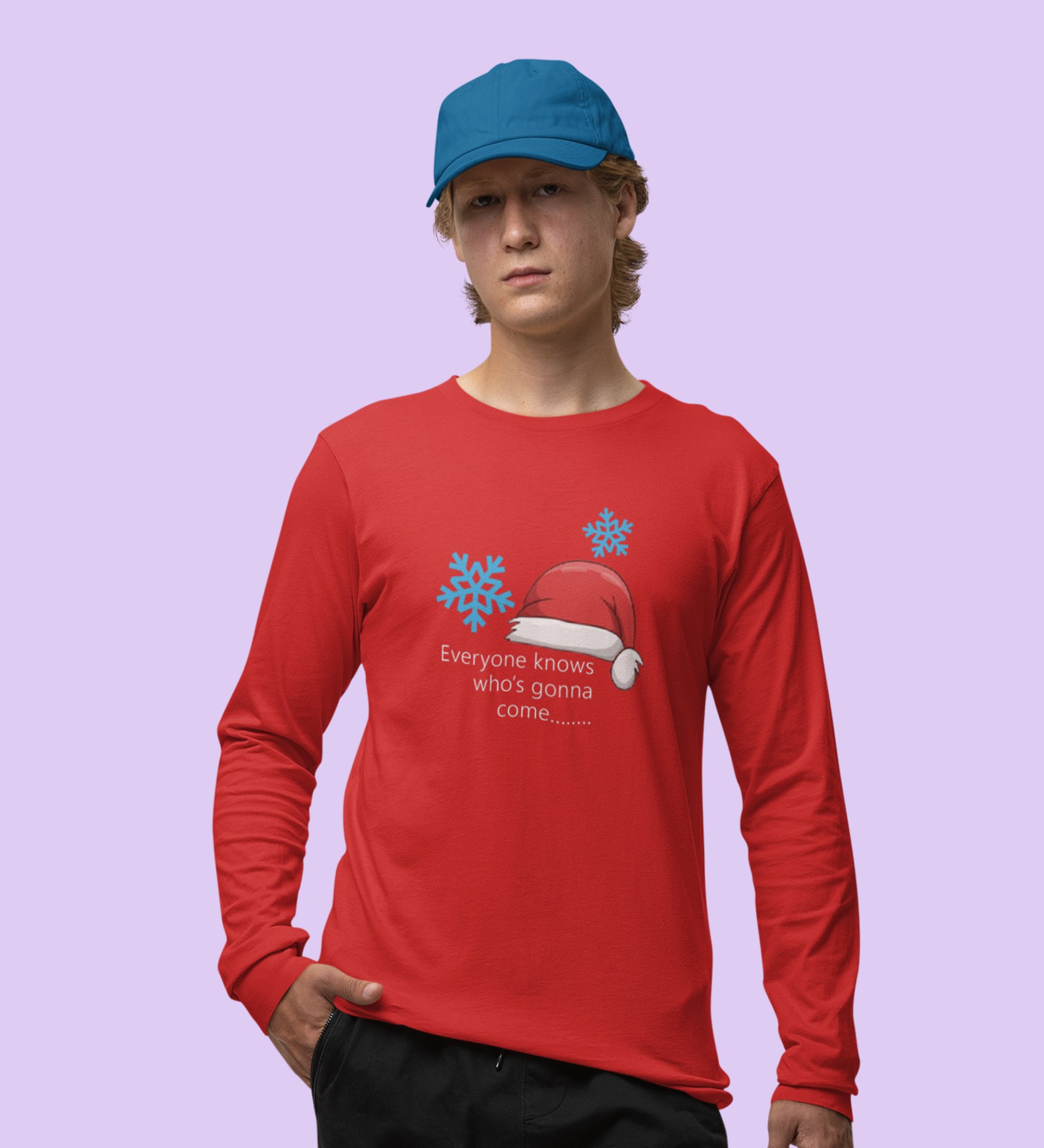 Santa Distributing Gifts: Best DesignerFull Sleeve T-shirt For Christmas RedMost Liked Gift For Boys Girls