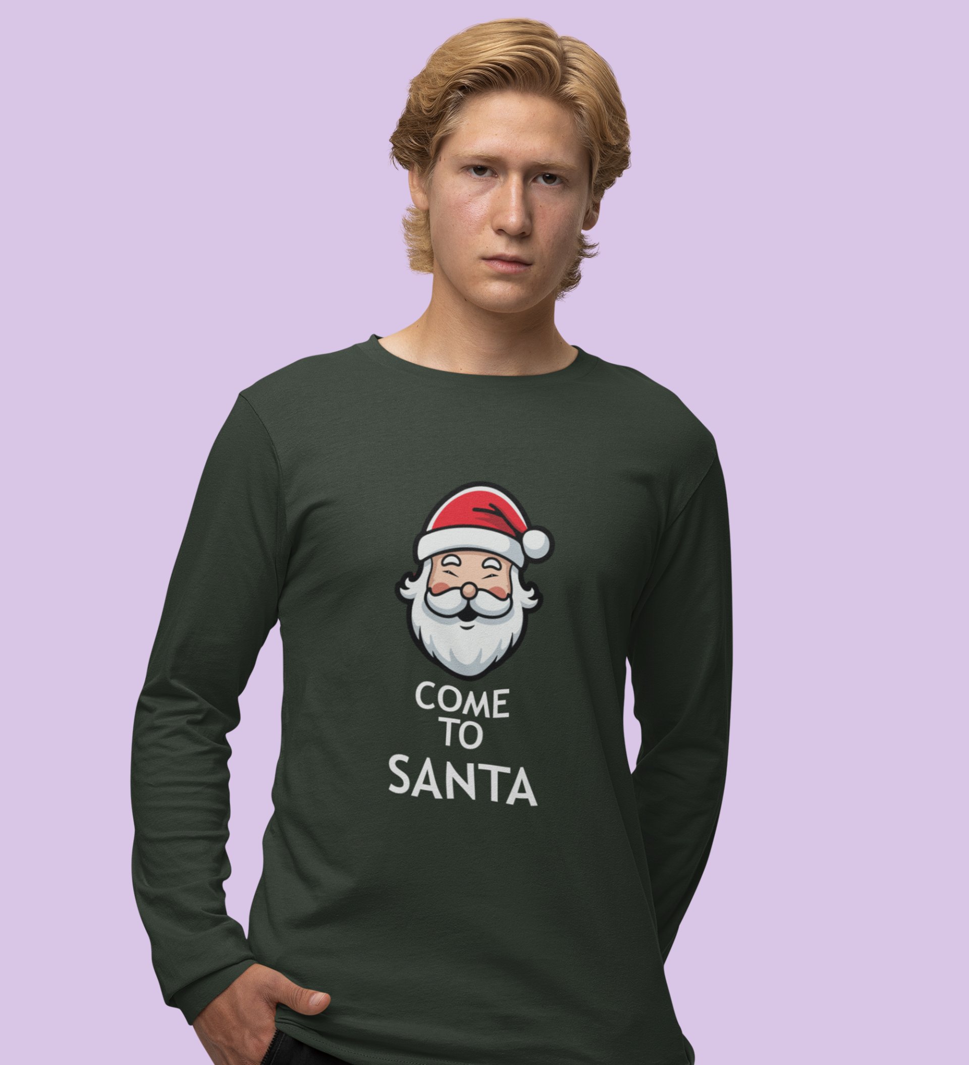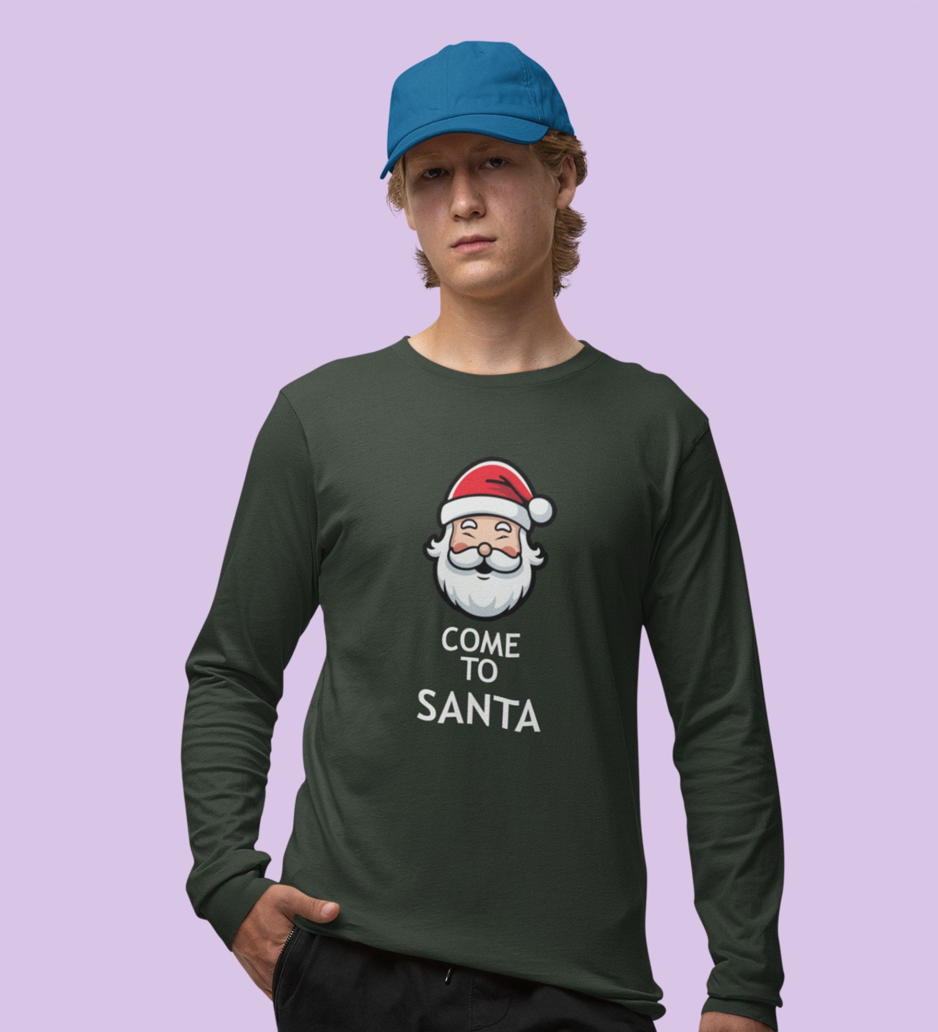 Santa Is Calling: DesignerFull Sleeve T-shirt Green Best Gift For Boys Girls