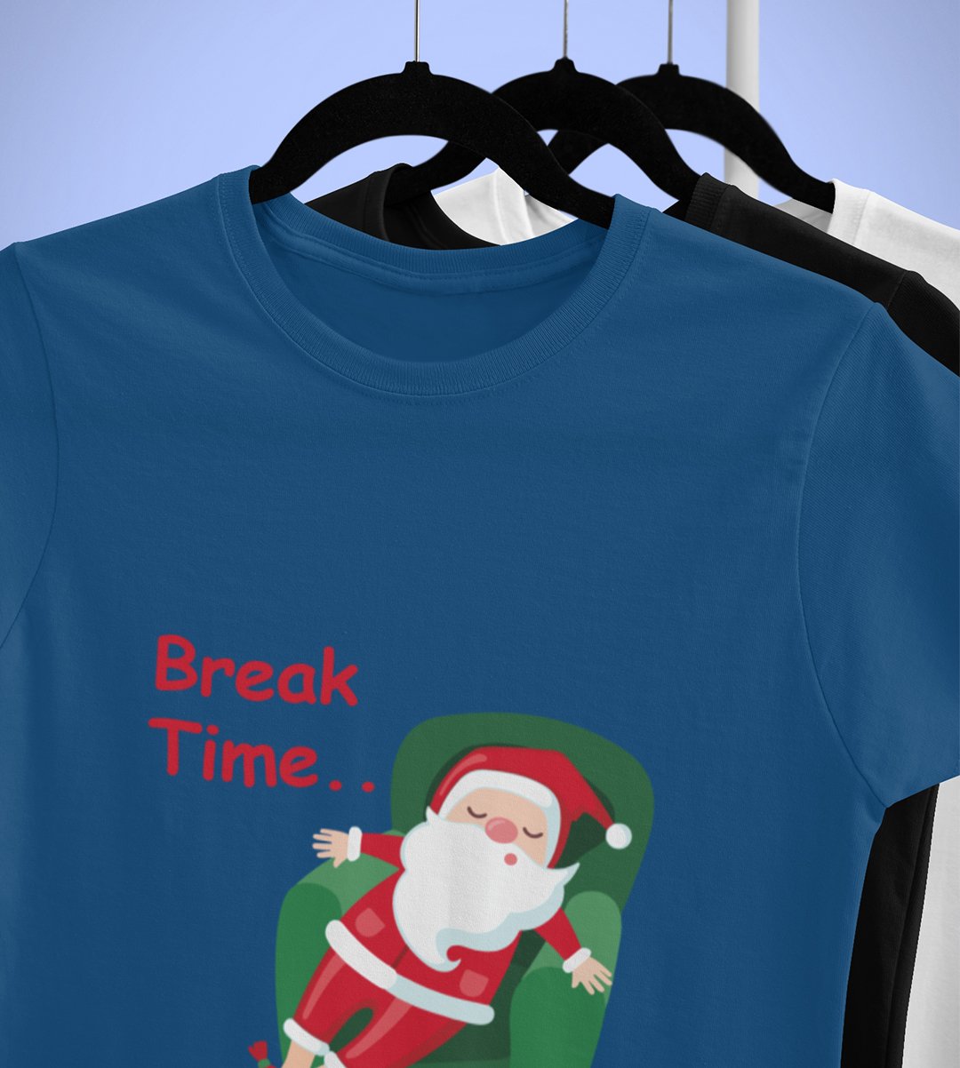 Santa Is On Break: Cute Printed T-shirte (Blue) Best Gift For Boys Girls