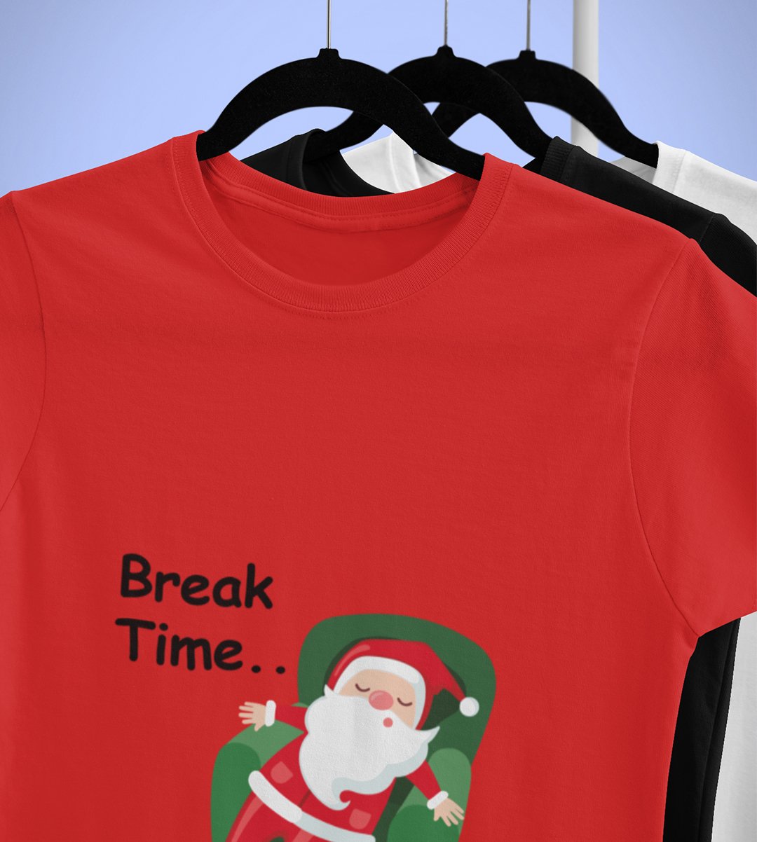 Santa Is On Break: Cute Printed T-shirte (Red) Best Gift For Boys Girls