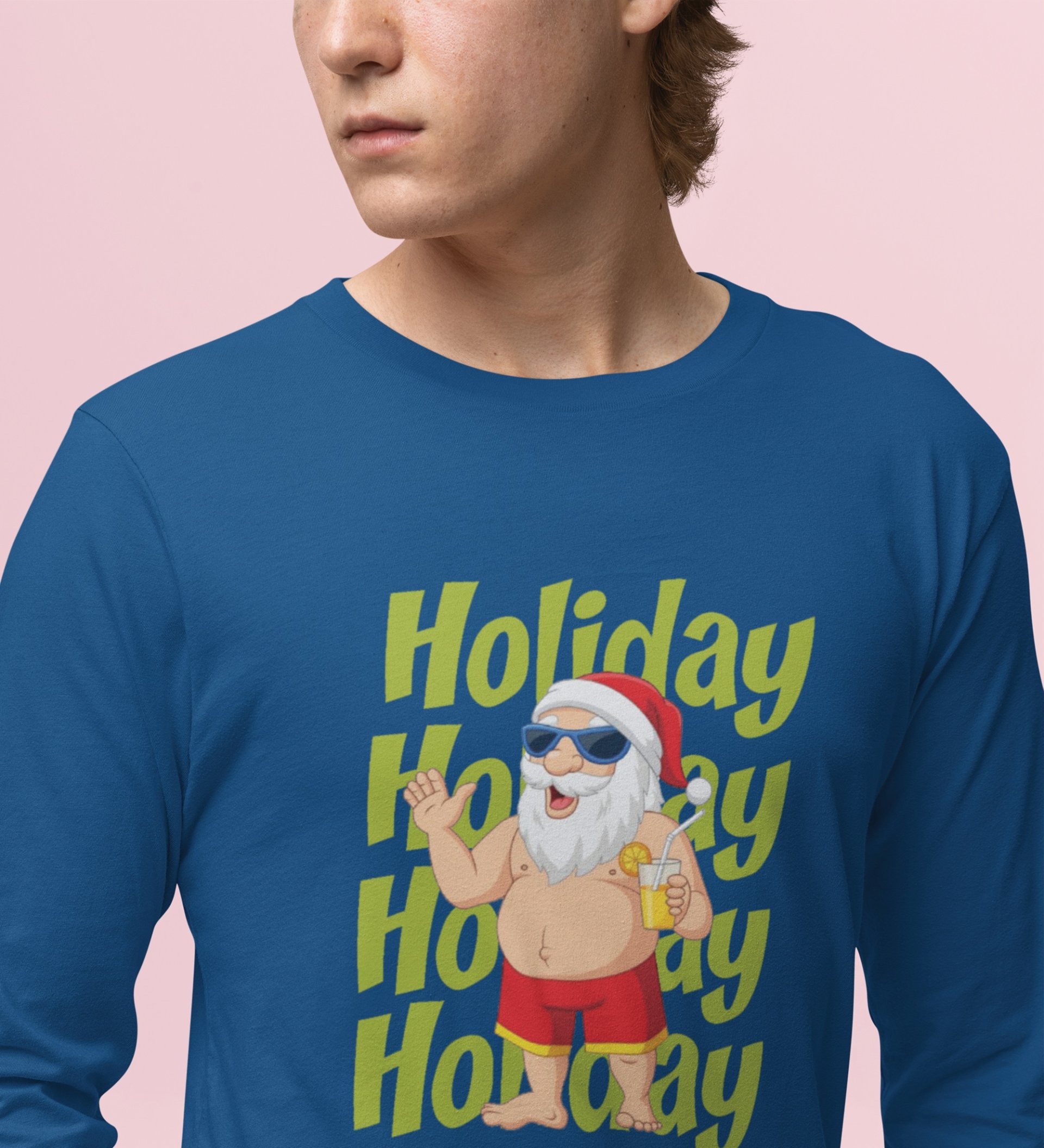Santa On VactionFull Sleeve T-shirt: Exclusive Gift For Boys GirlsBlue Cool SantaFull Sleeve T-shirt, A Perfect Gift For Secret Santa