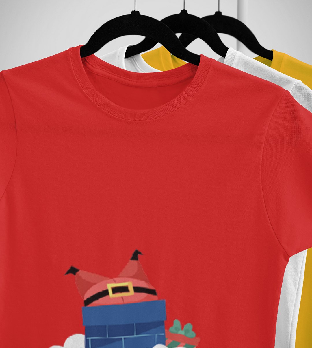 Santa Stucked In Chimeny : Best Printed T-shirt Botttle (Red) Christmas's Best Gift For Boys Girls