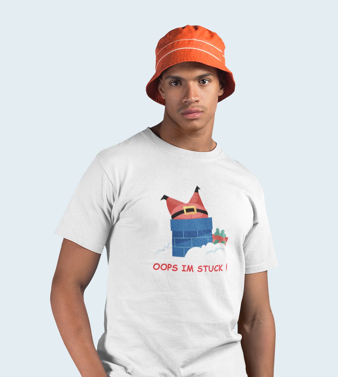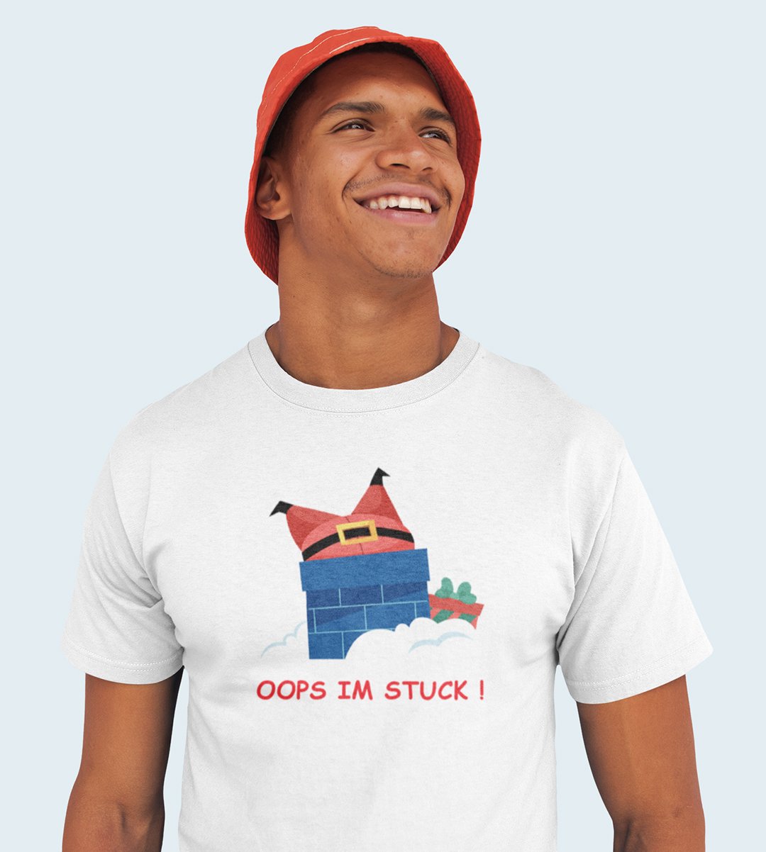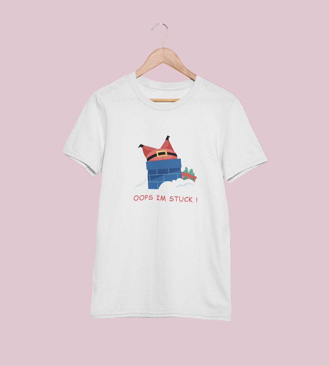 Santa Stucked In Chimeny : Best Printed T-shirt Botttle (White) Christmas's Best Gift For Boys Girls