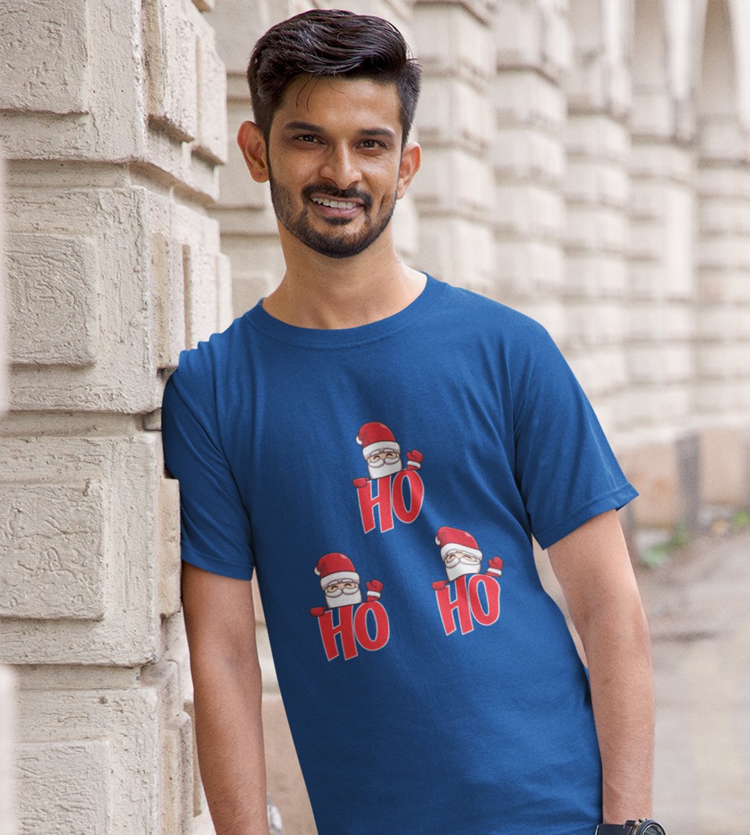 Santas Classic Laugh Printed T-shirt ,(Blue) Christmas Edition Printed T-shirt |Best Gift For Friends Family Boys Girls