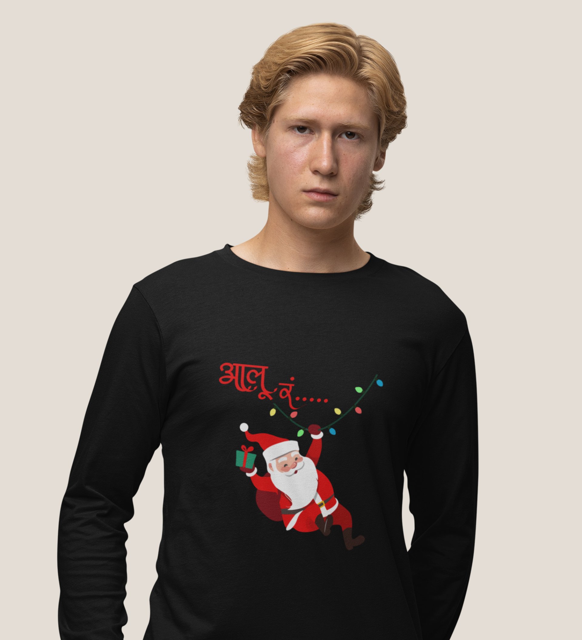 Santa's Coming: Best DesignerFull Sleeve T-shirt Black Best Gift For Secret Santa