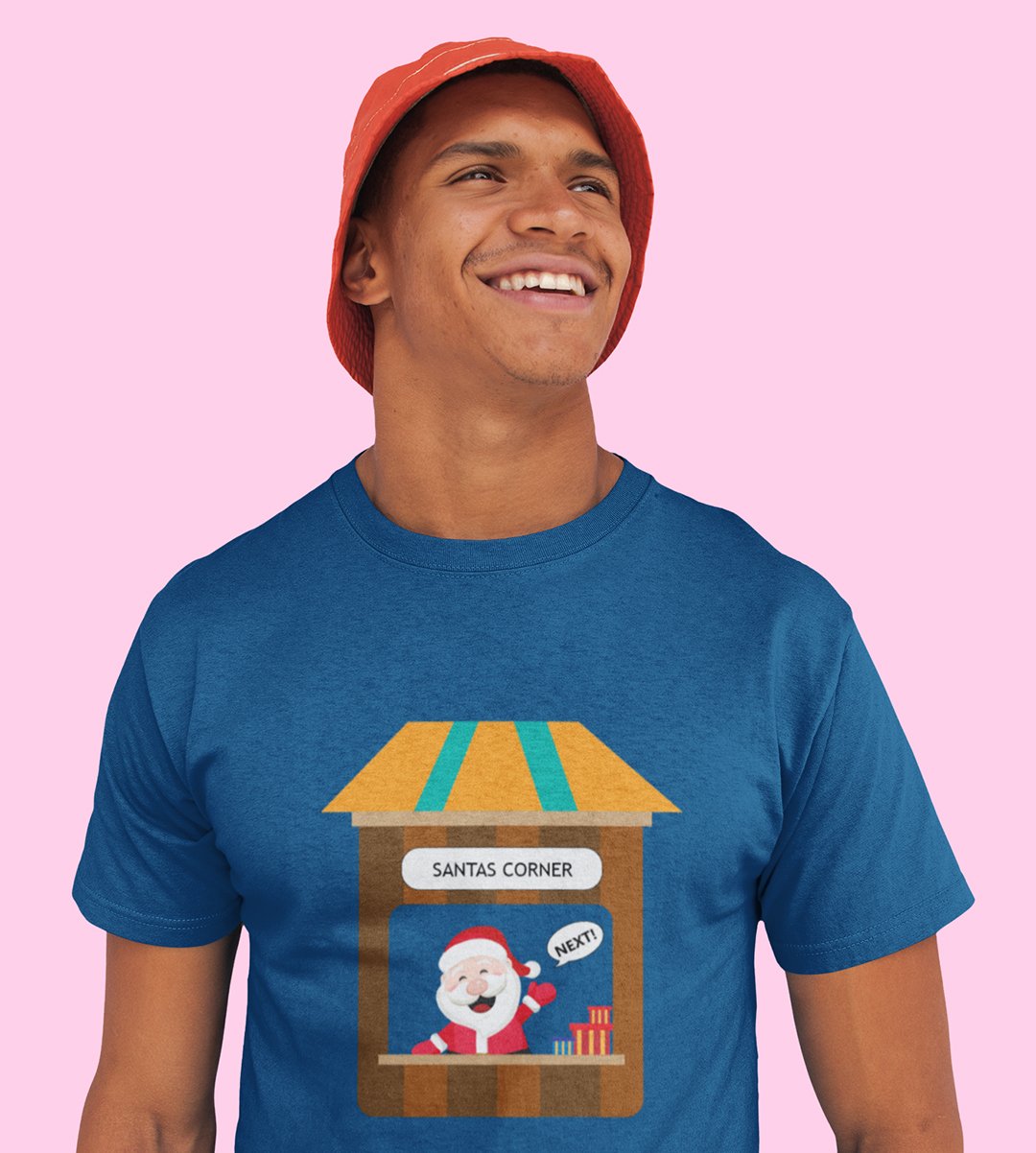 Santa's Gift Shop: Beautifully Printed T-shirt (Blue) Best Gift For Secret Santa