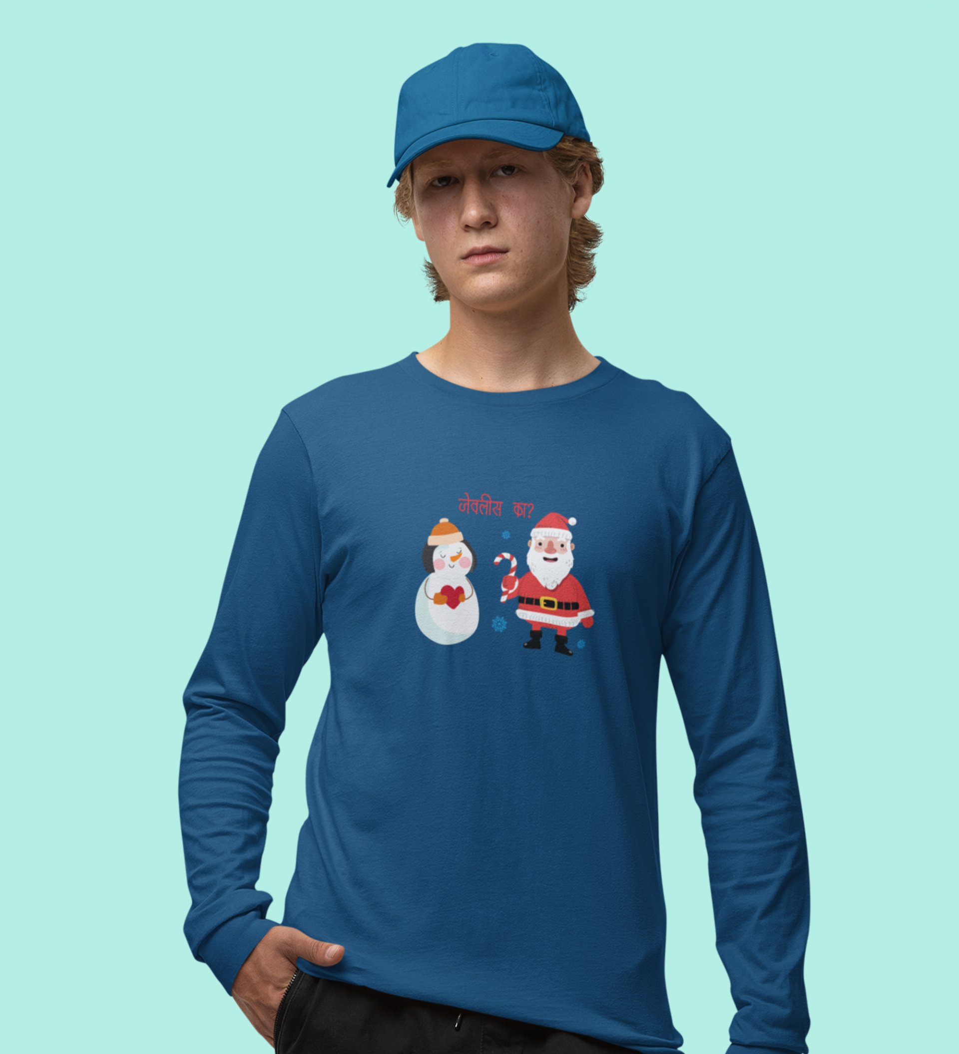 Santa's Lovestory: Romantic DesignerFull Sleeve T-shirt Blue Amazing Gift For Boys Girls