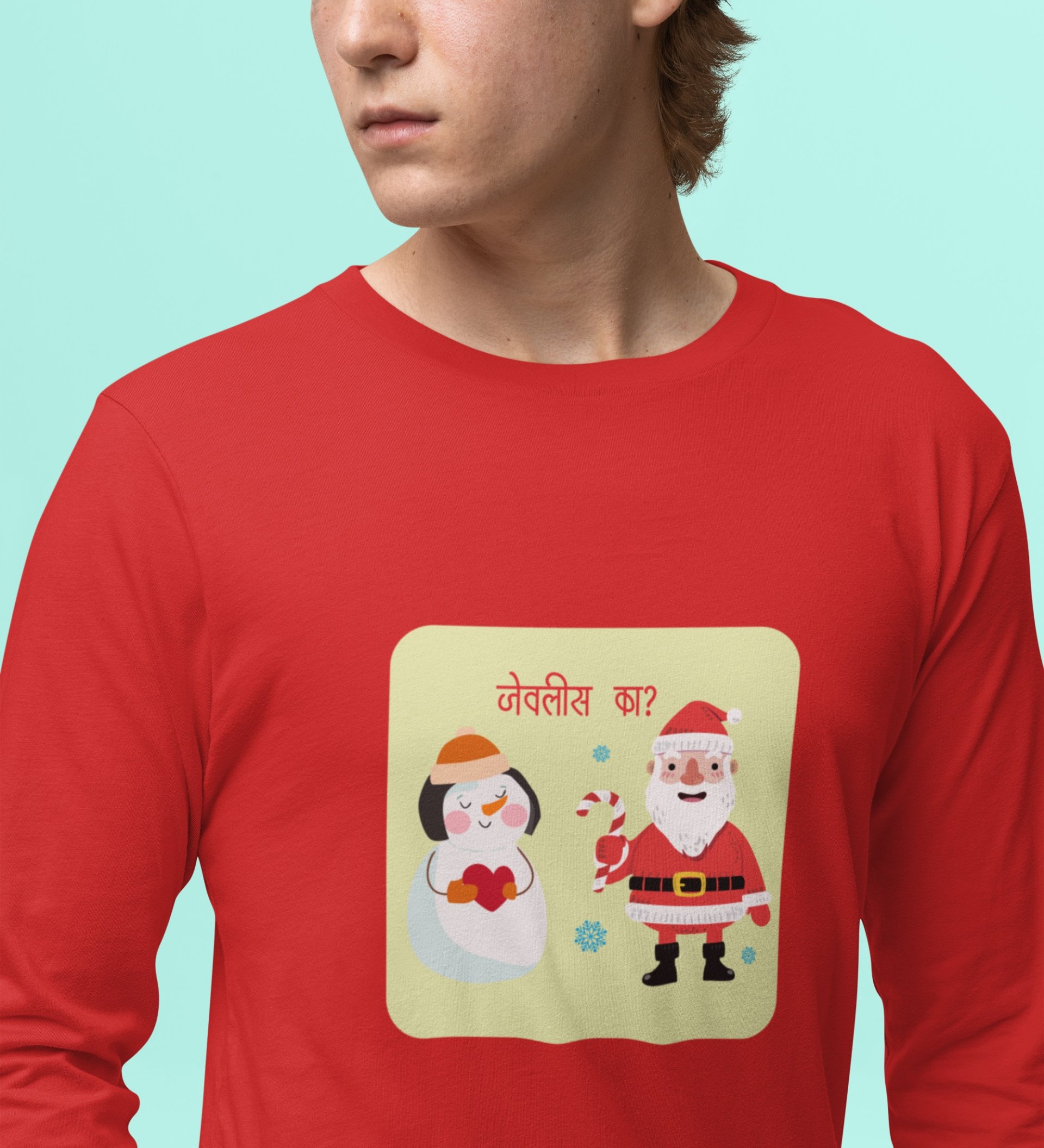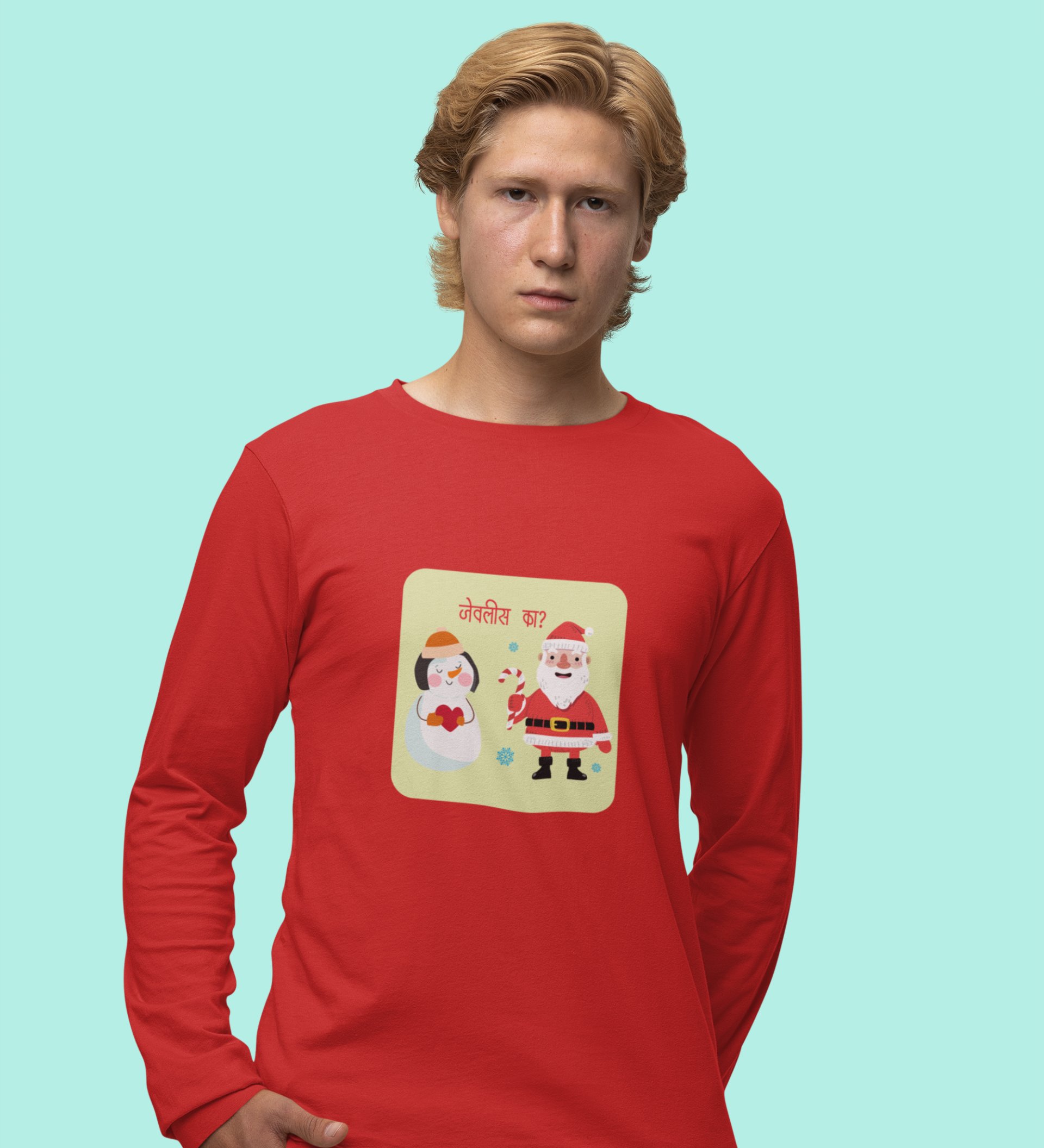 Santa's Lovestory: Romantic DesignerFull Sleeve T-shirt Red Amazing Gift For Boys Girls