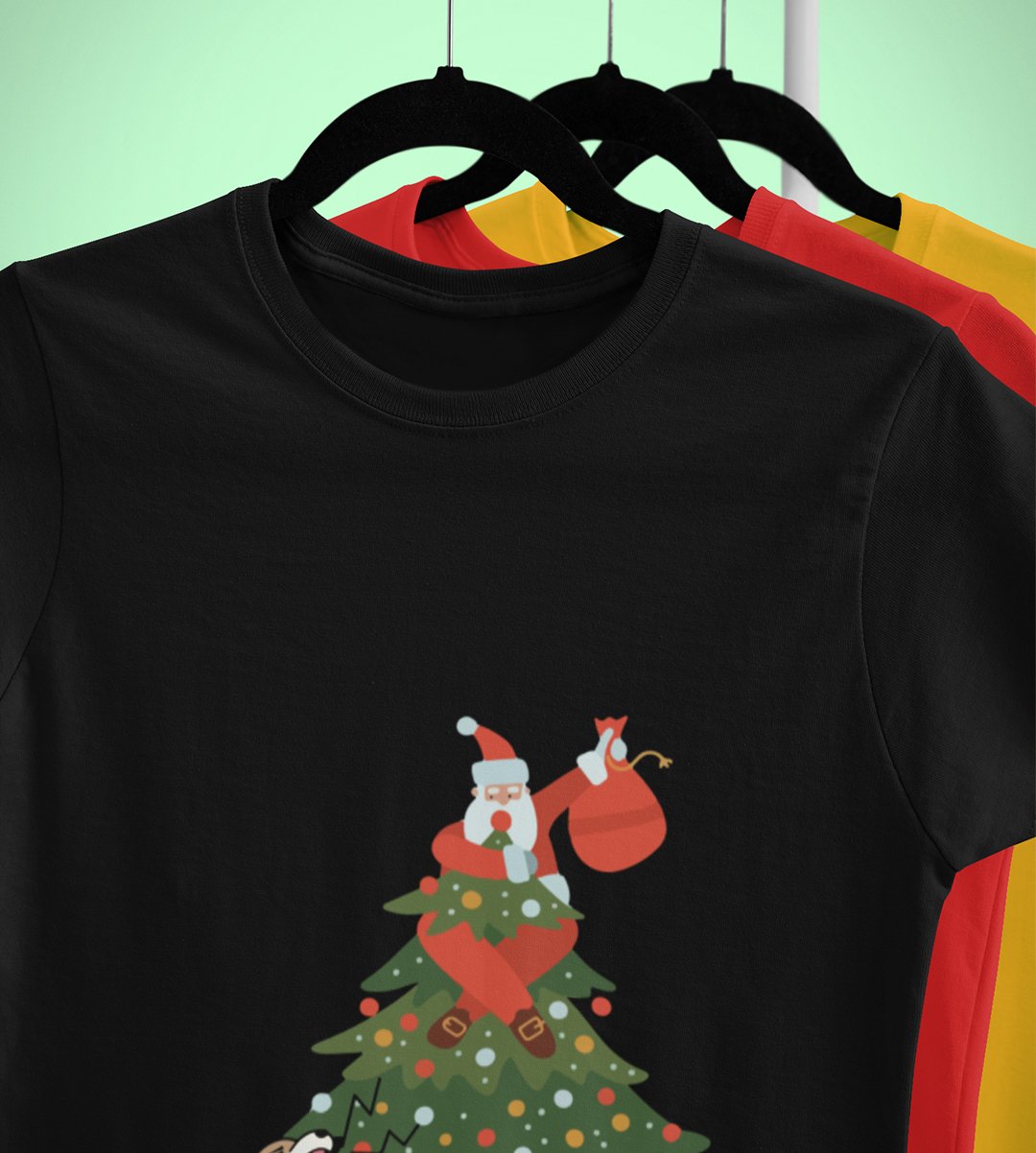 Santa's On Tree: Best Printed T-shirt (Black) Best Gift For Secret Santa