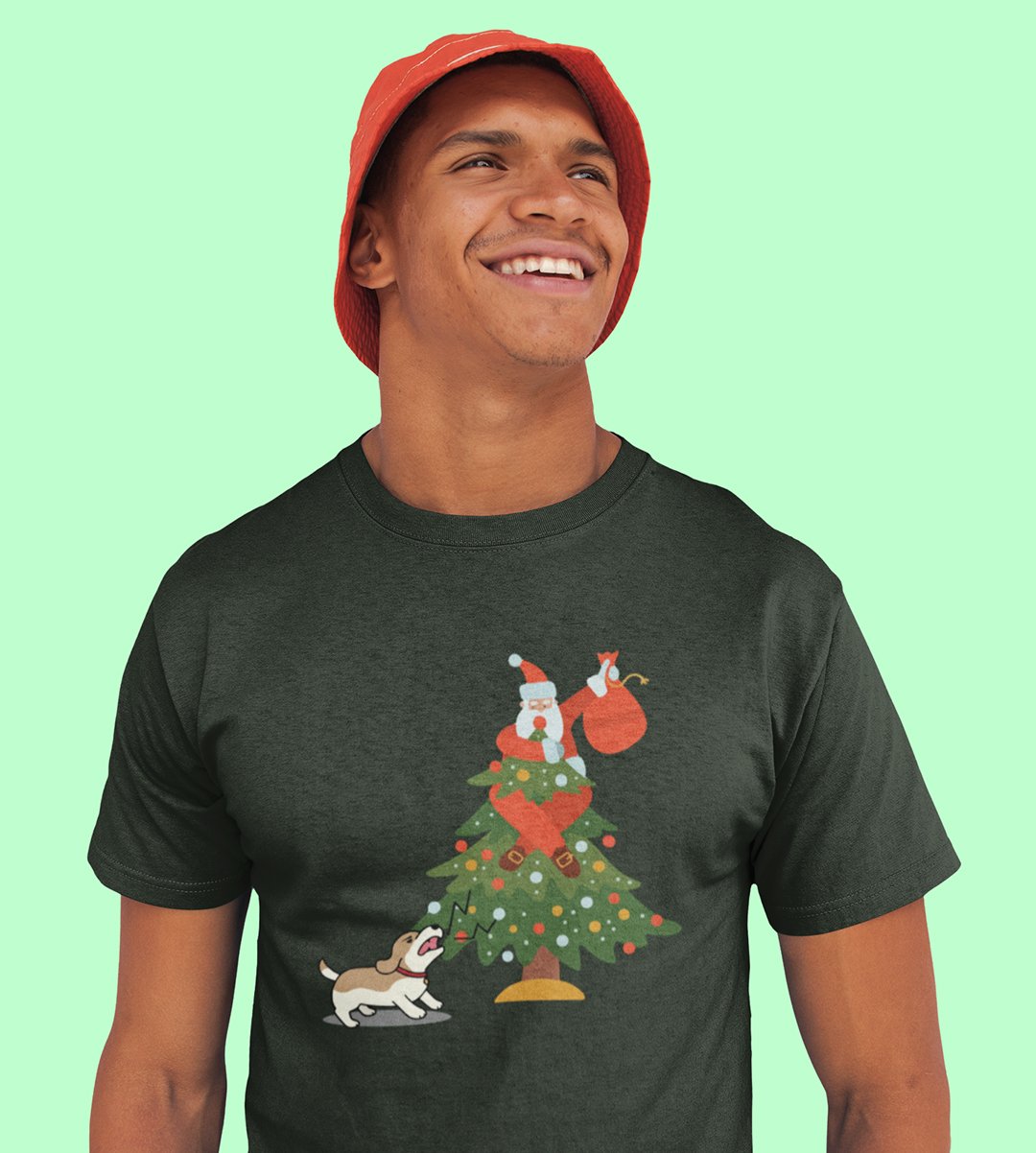 Santa's On Tree: Best Printed T-shirt (Green) Best Gift For Secret Santa