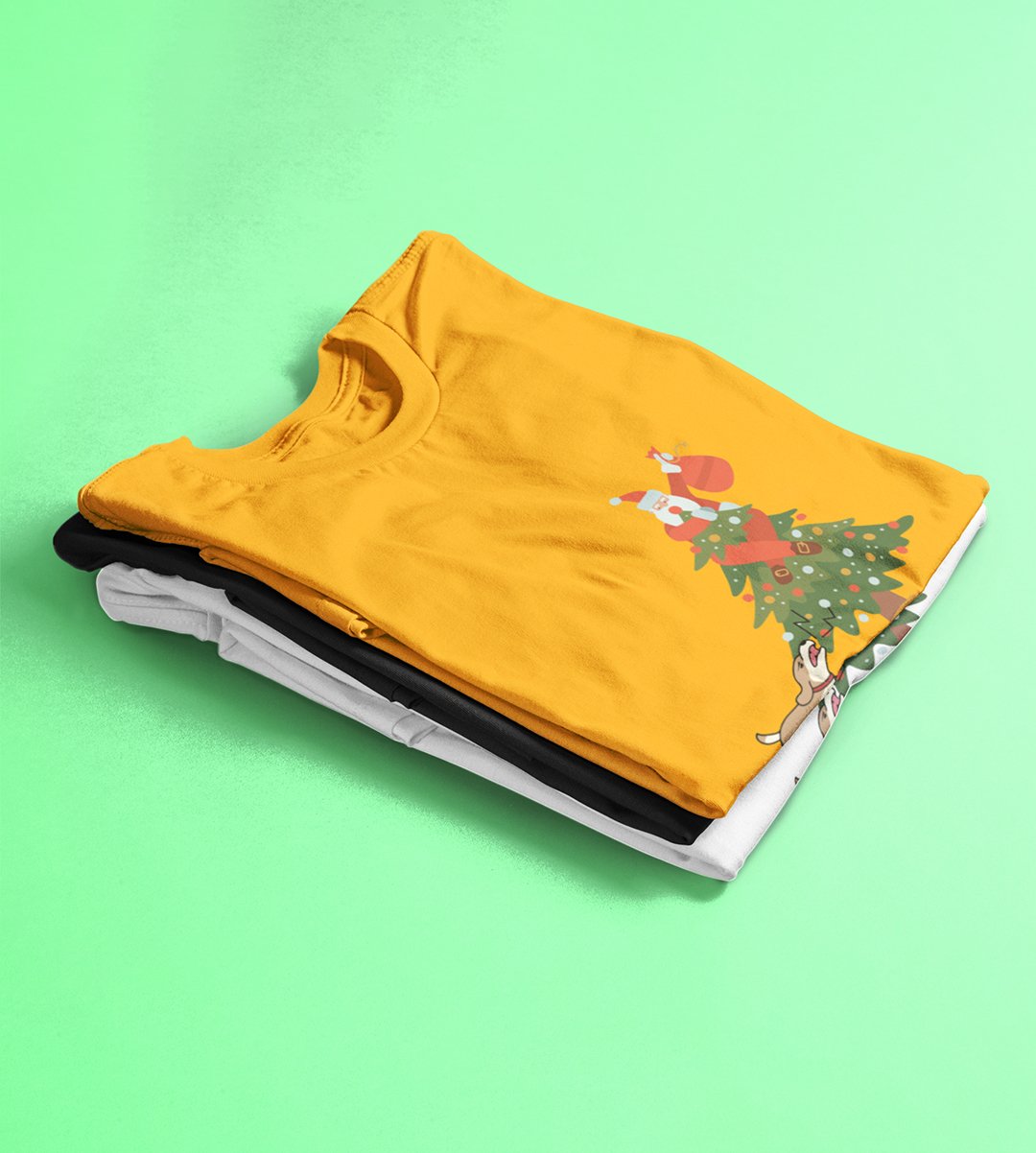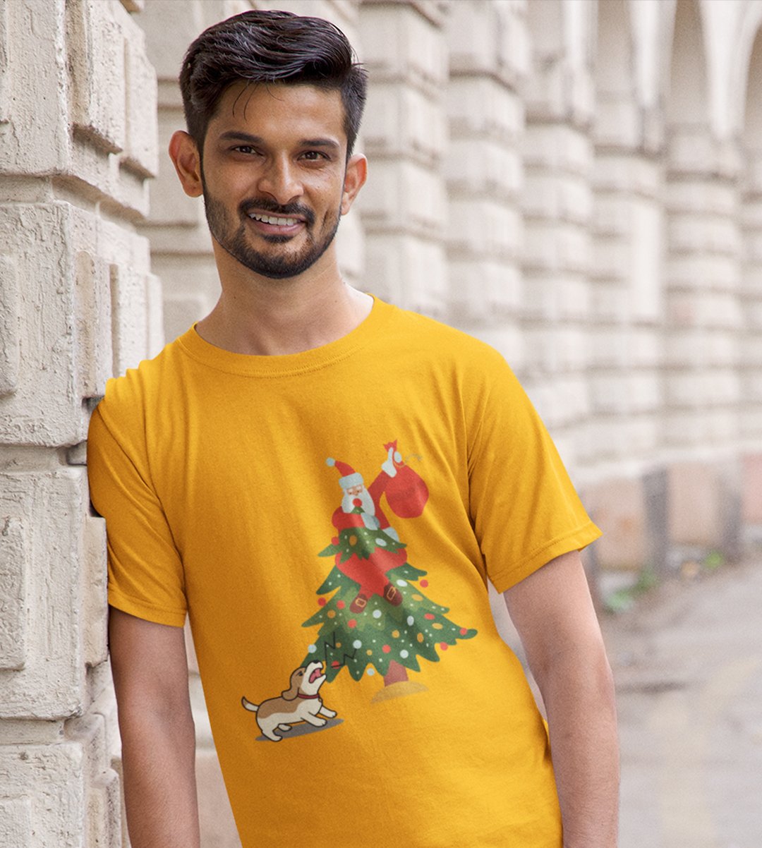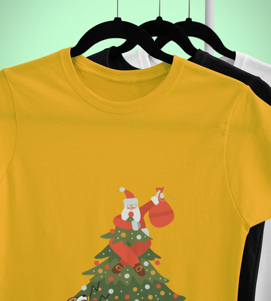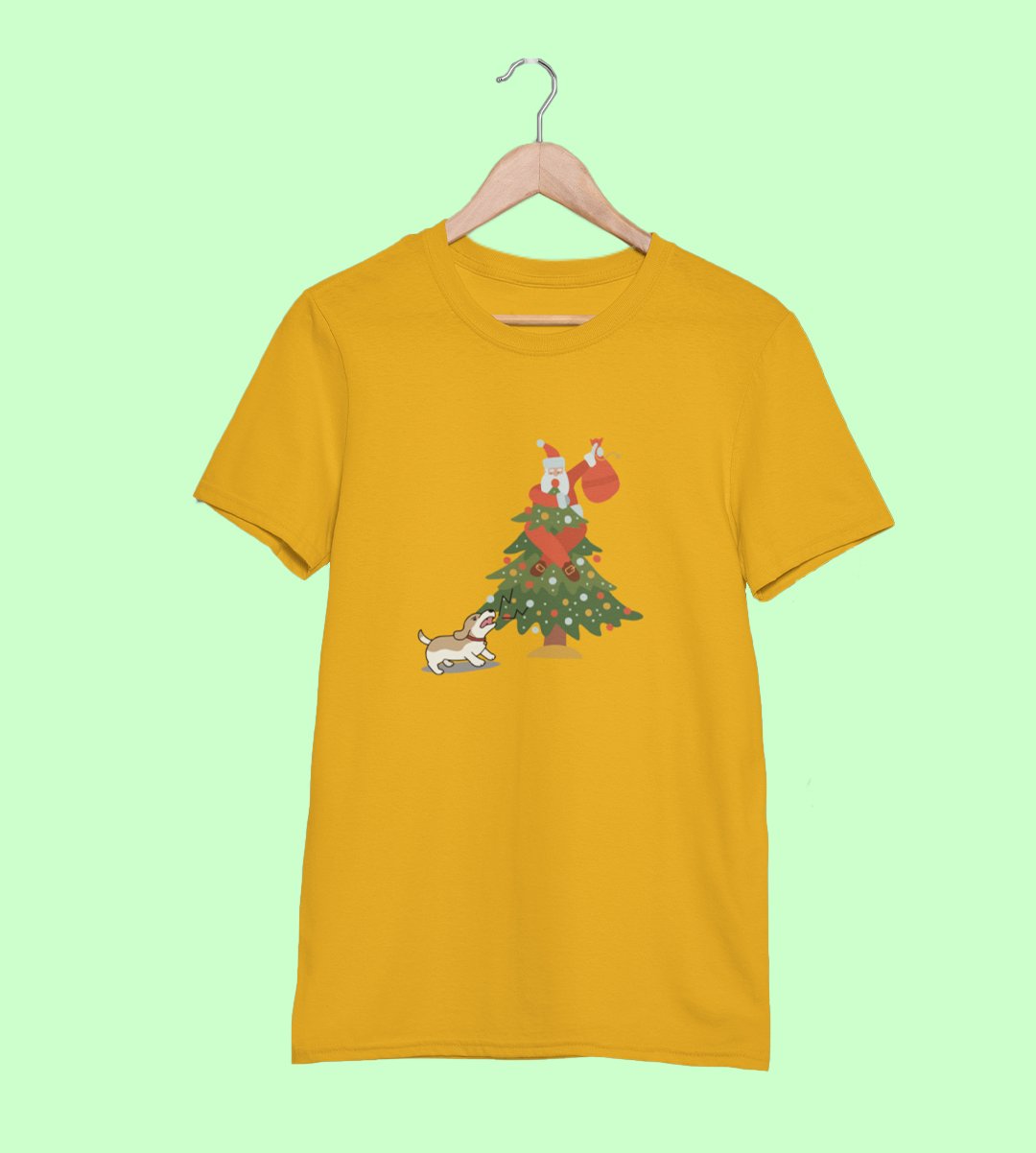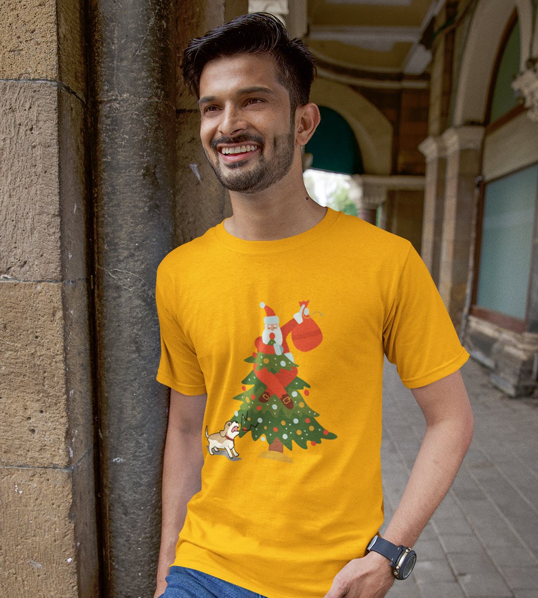 Santa's On Tree: Best Printed T-shirt (Yellow) Best Gift For Secret Santa