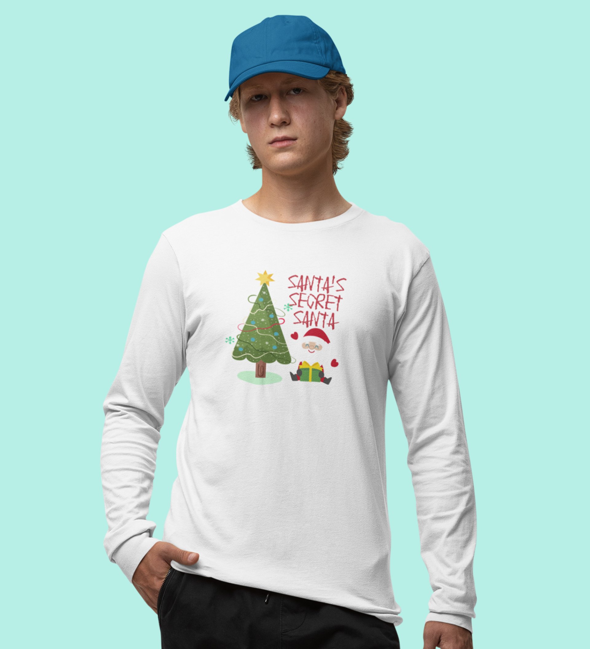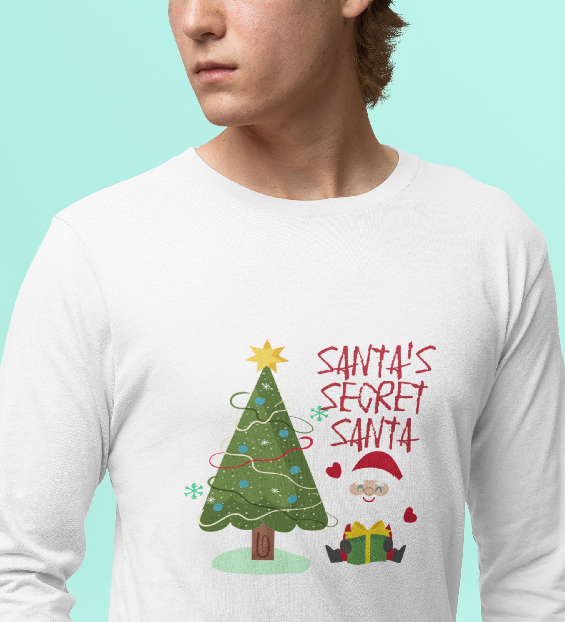 Santa's Secret Santa: Elegantly DesignedFull Sleeve T-shirt White Perfect Gift For Secret Santa