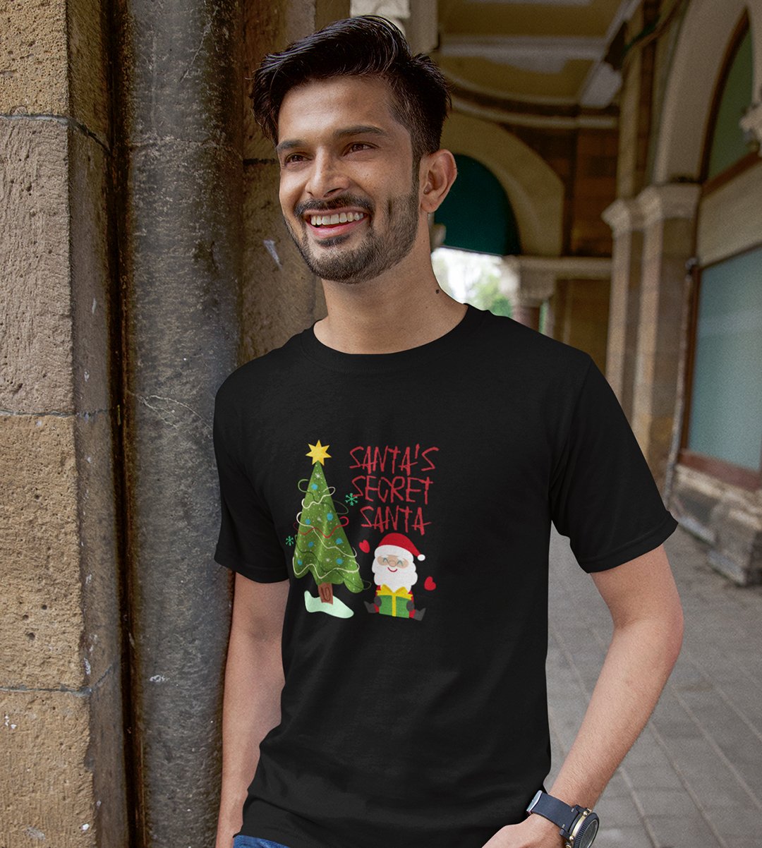 Santa's Secret Santa: Elegantly Printed T-shirt (Black) Perfect Gift For Secret Santa