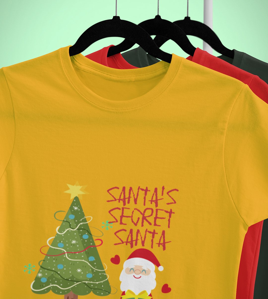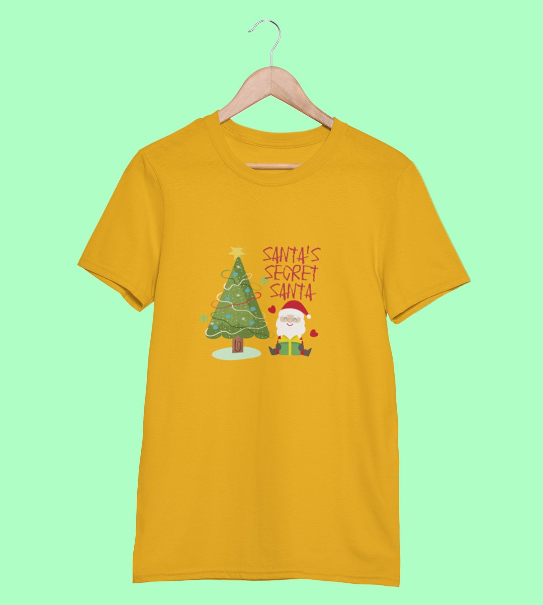 Santa's Secret Santa: Elegantly Printed T-shirt (Yellow) Perfect Gift For Secret Santa