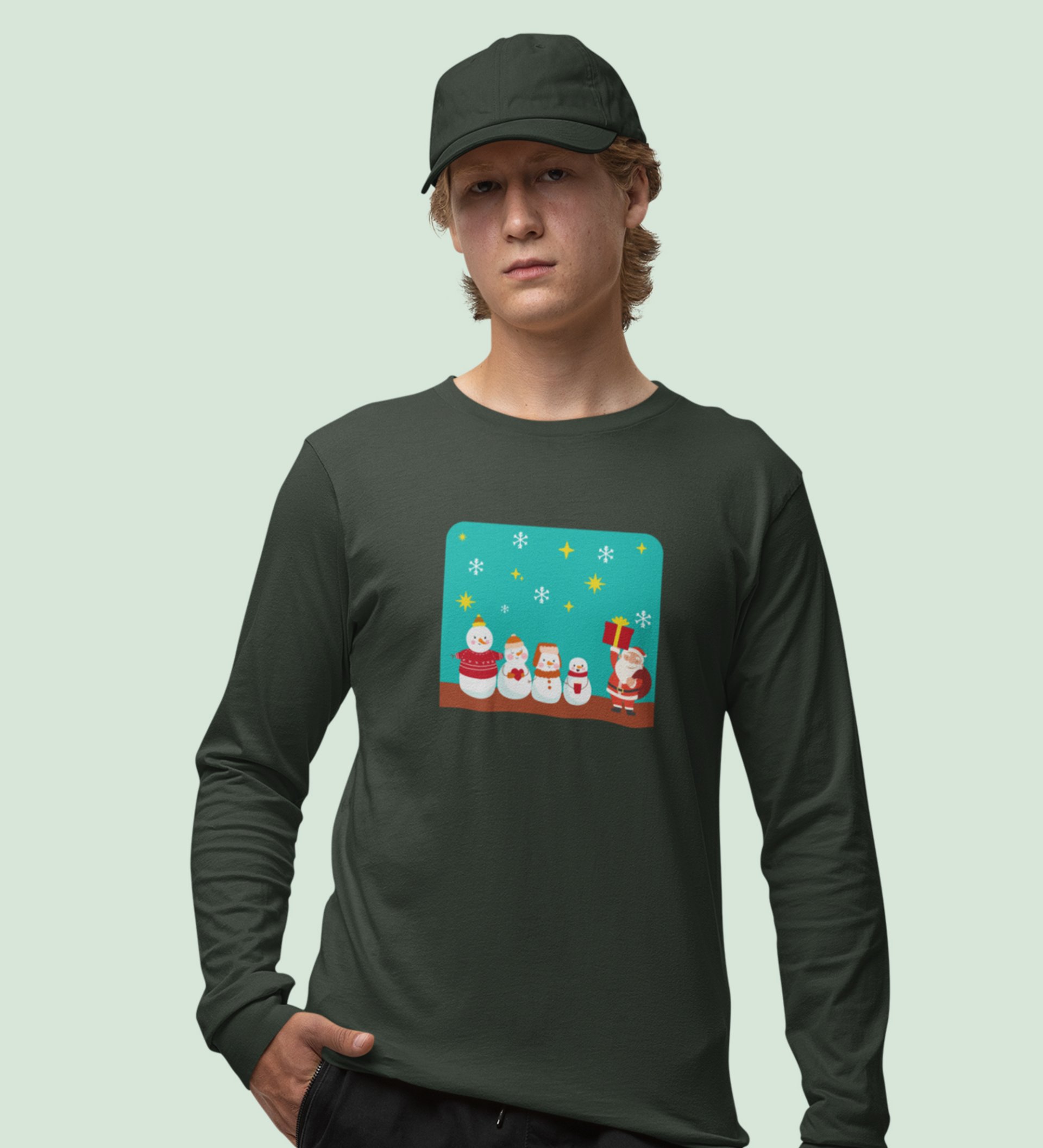 Santa's Squad: Cute DesignedFull Sleeve T-shirt Green Perfect Gift For kids