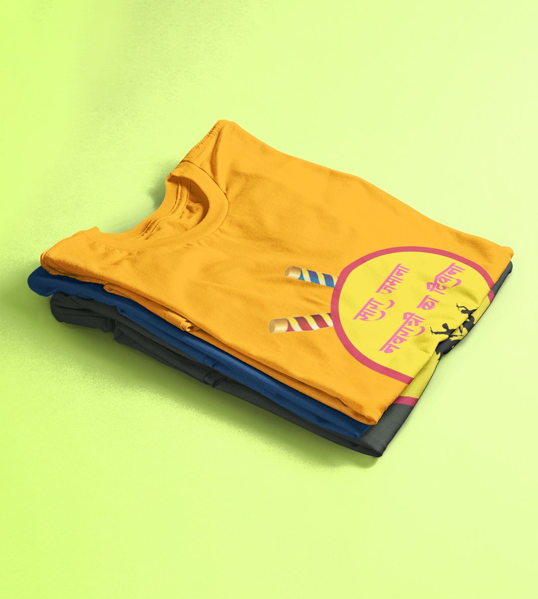 Sara jamana printed unisex adults round neck cotton half-sleeve yellow tshirt specially for Navratri festival/ Durga puja