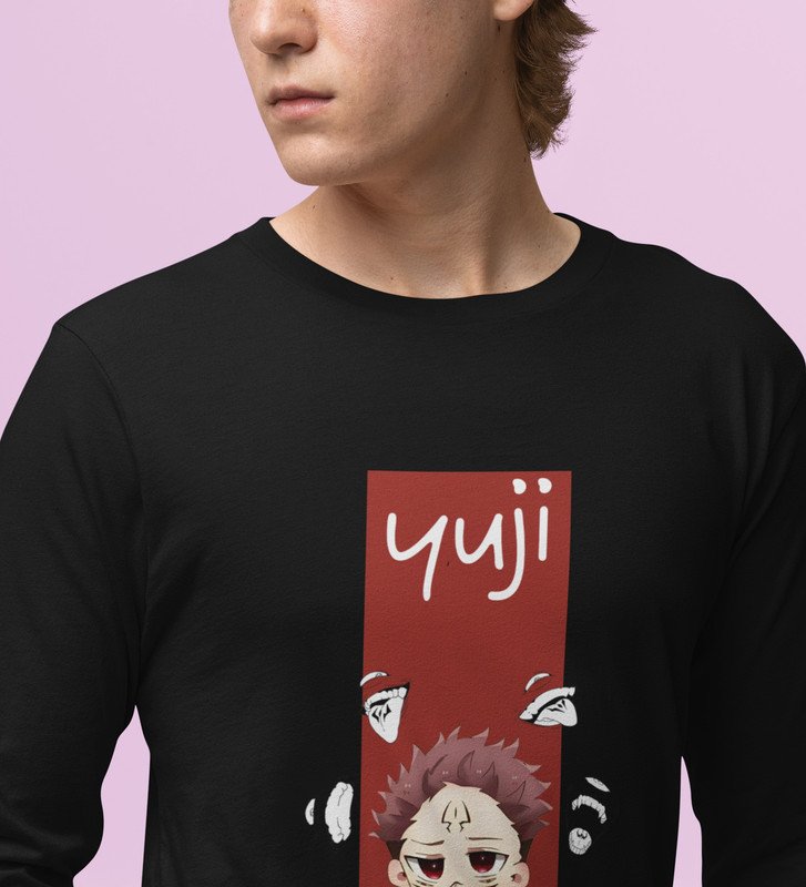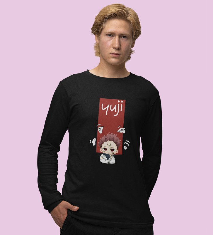 Sarcastic Itadori Cotton Black Printed Full Sleeves Tshirt For Mens and Boys