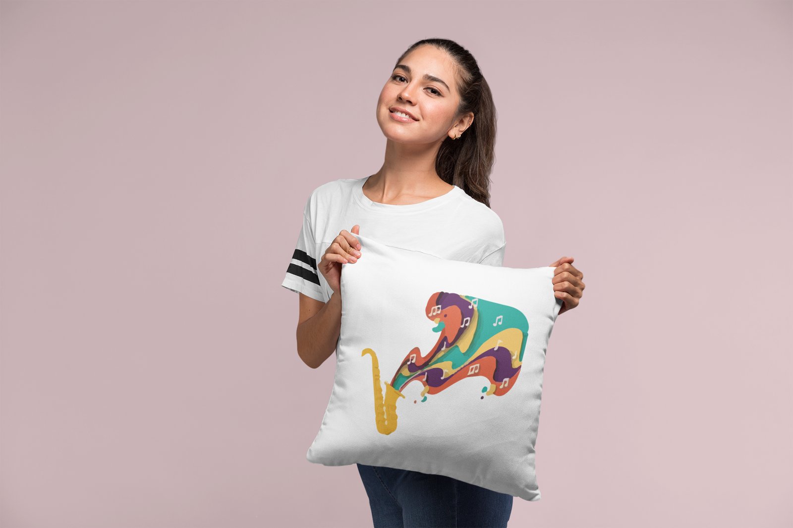 Saxophone Music Notes - Special Printed Pillow Covers For Music Lovers(Combo Set of 2)