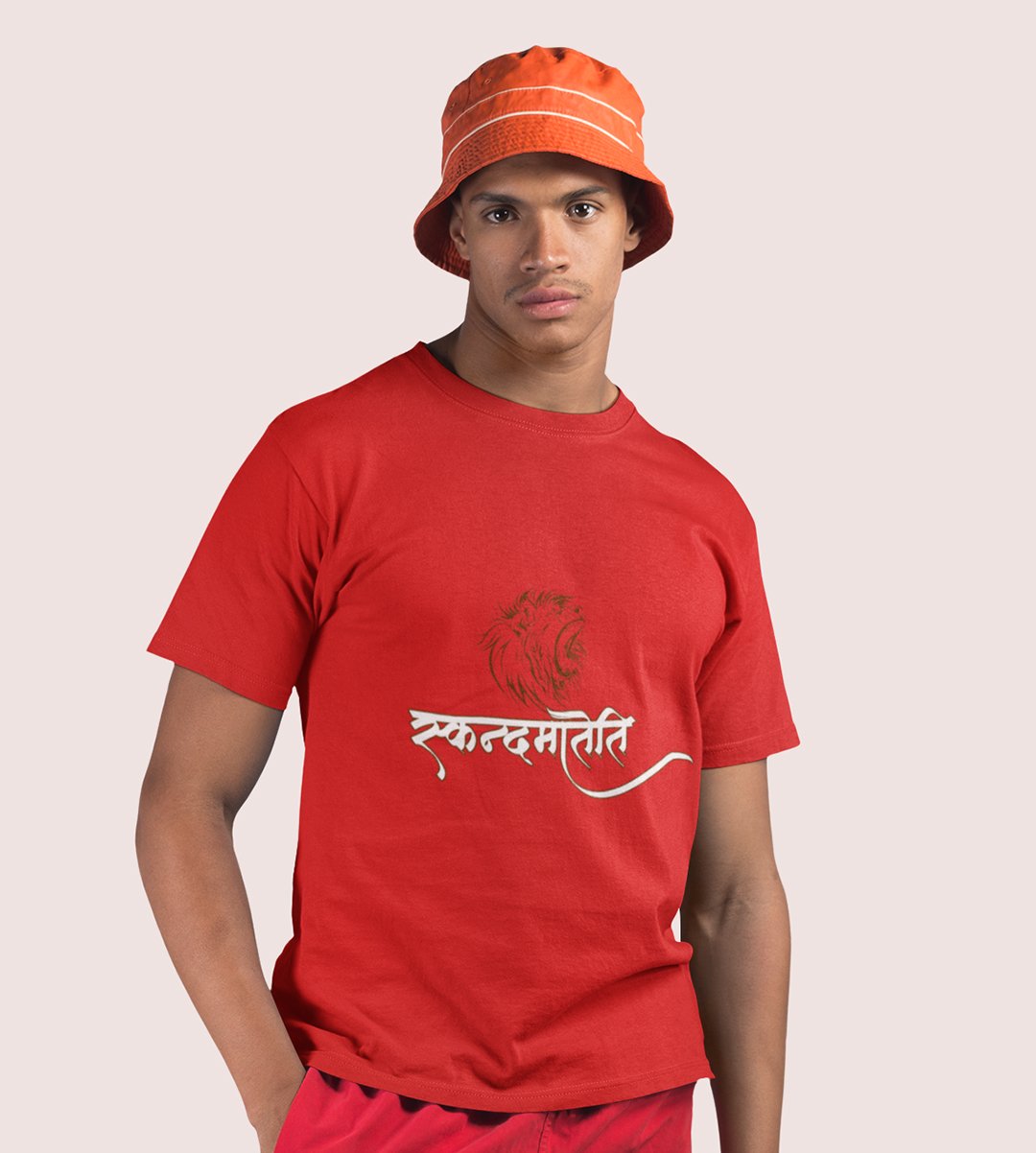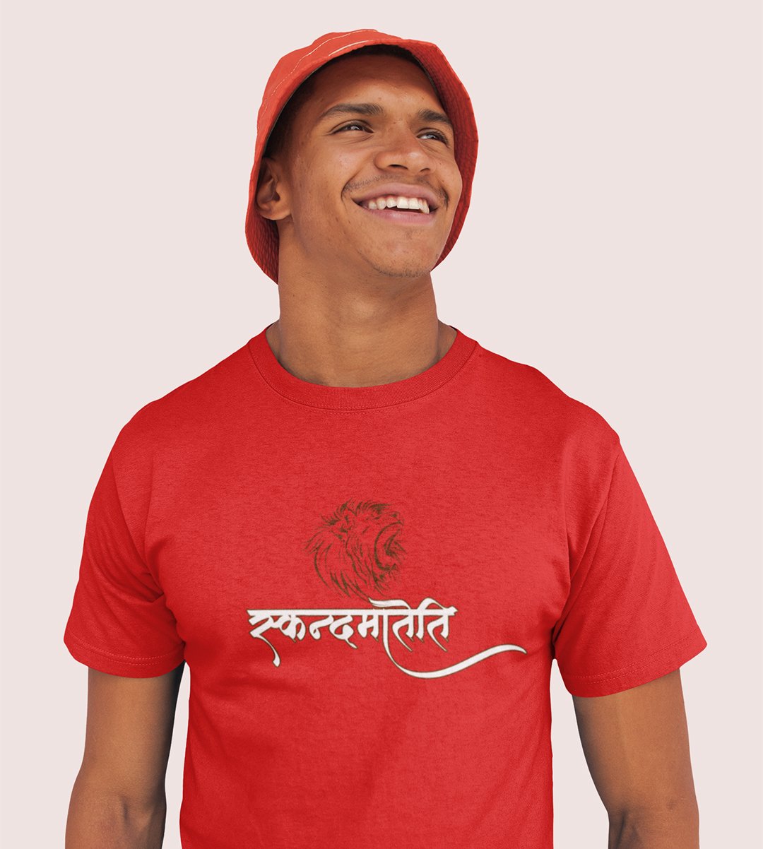 Scandamatini printed unisex adults round neck cotton half-sleeve red tshirt specially for Navratri festival/ Durga puja
