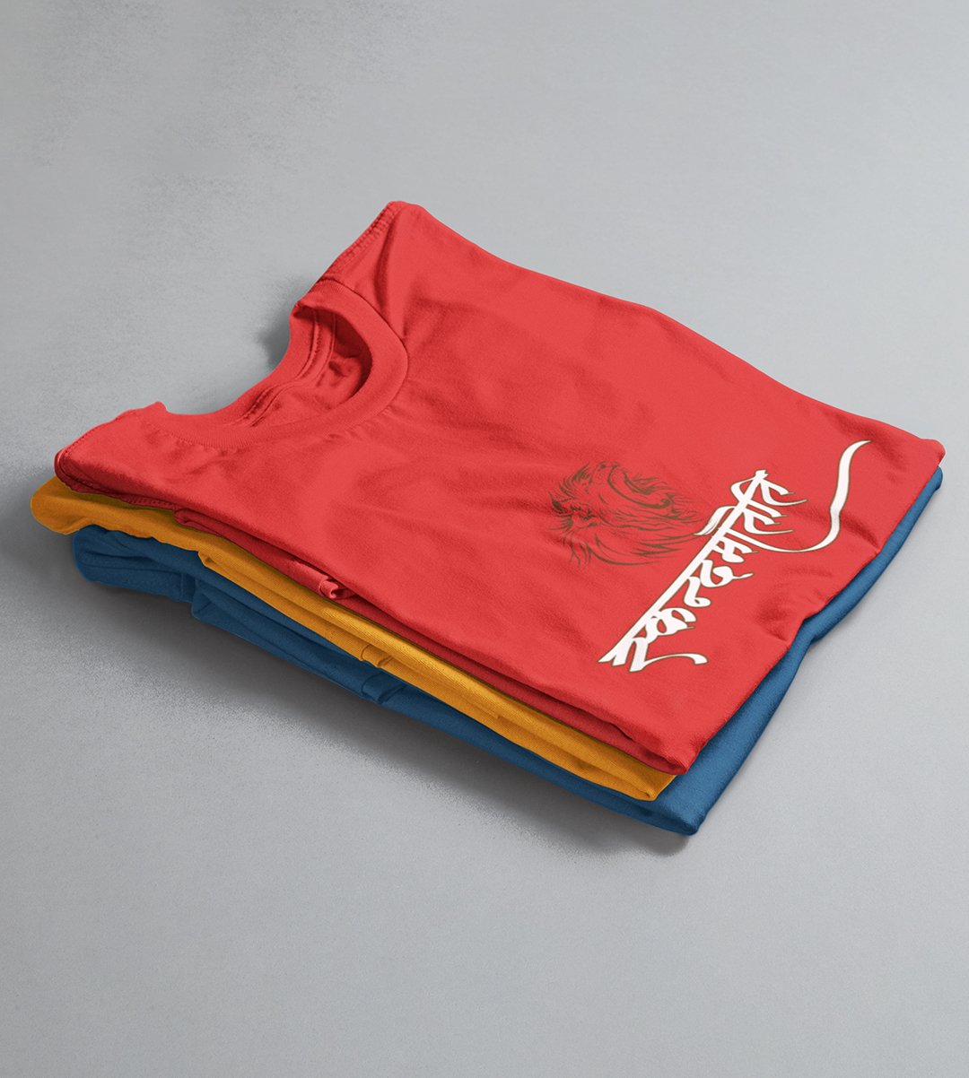 Navratri is a very auspicious festival for hindus. It takes place at the beginning of October and sometimes September. Enjoy the 9 days of festivities with full zeal and make yourself submerged in the love of Maa Durga. Navratri is also known as Durga Puja. And with this Tees, you can shine like a star during this festive season with our navratri themed cotton half sleeved Tshirts. You can pair our t-shirts with trousers and denim of your choice and make it a weekday smart casual or weekend wear. This is durable. This tshirt is smooth and soft which makes you comfortable to wear during all seasons. The printing in it is durable and odourless. It has five sizes, S,M,L,XL,XXL. The Tshirt colour is intact even after repeated washes. It can be kept in your wardrobe and hangers. Please avoid washing mashine to clean this Tee, it may affect the print. Hand wash only. We have brought you many navratri related designs printed on our different colour Tshirts to choose from. Grab it now.