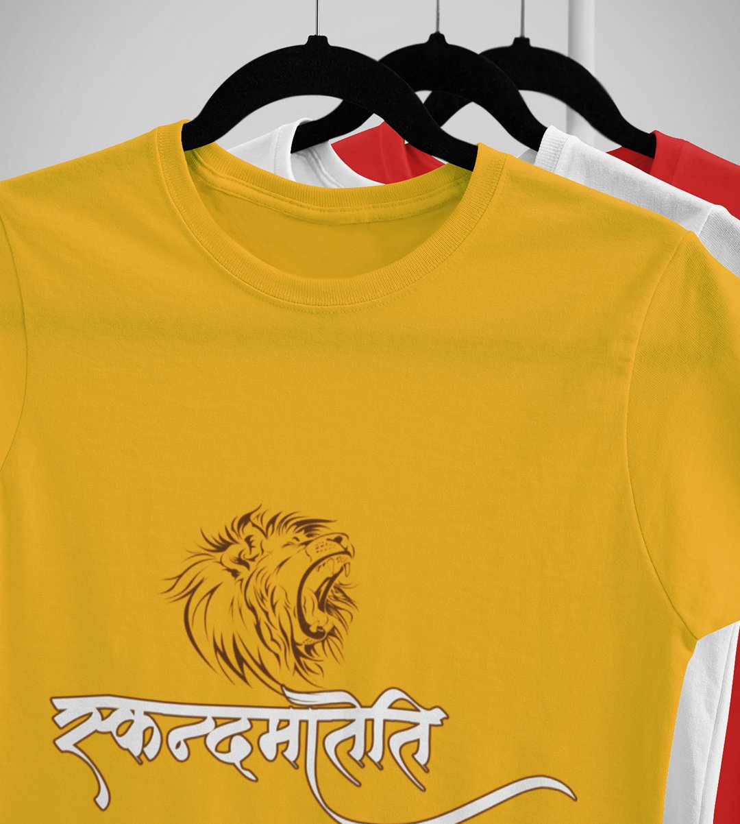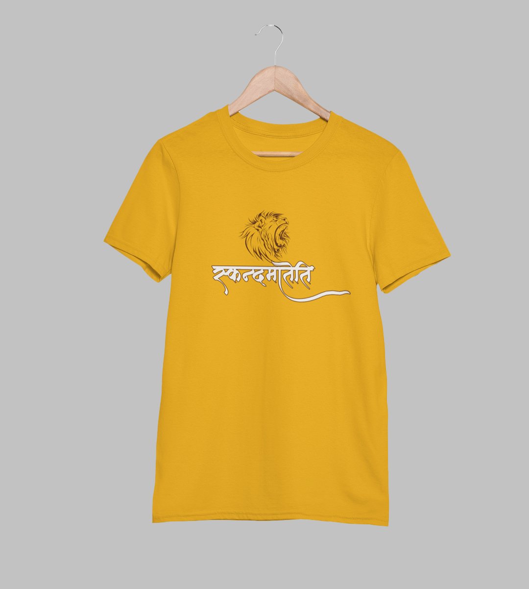 Scandamatini printed unisex adults round neck cotton half-sleeve yellow tshirt specially for Navratri festival/ Durga puja