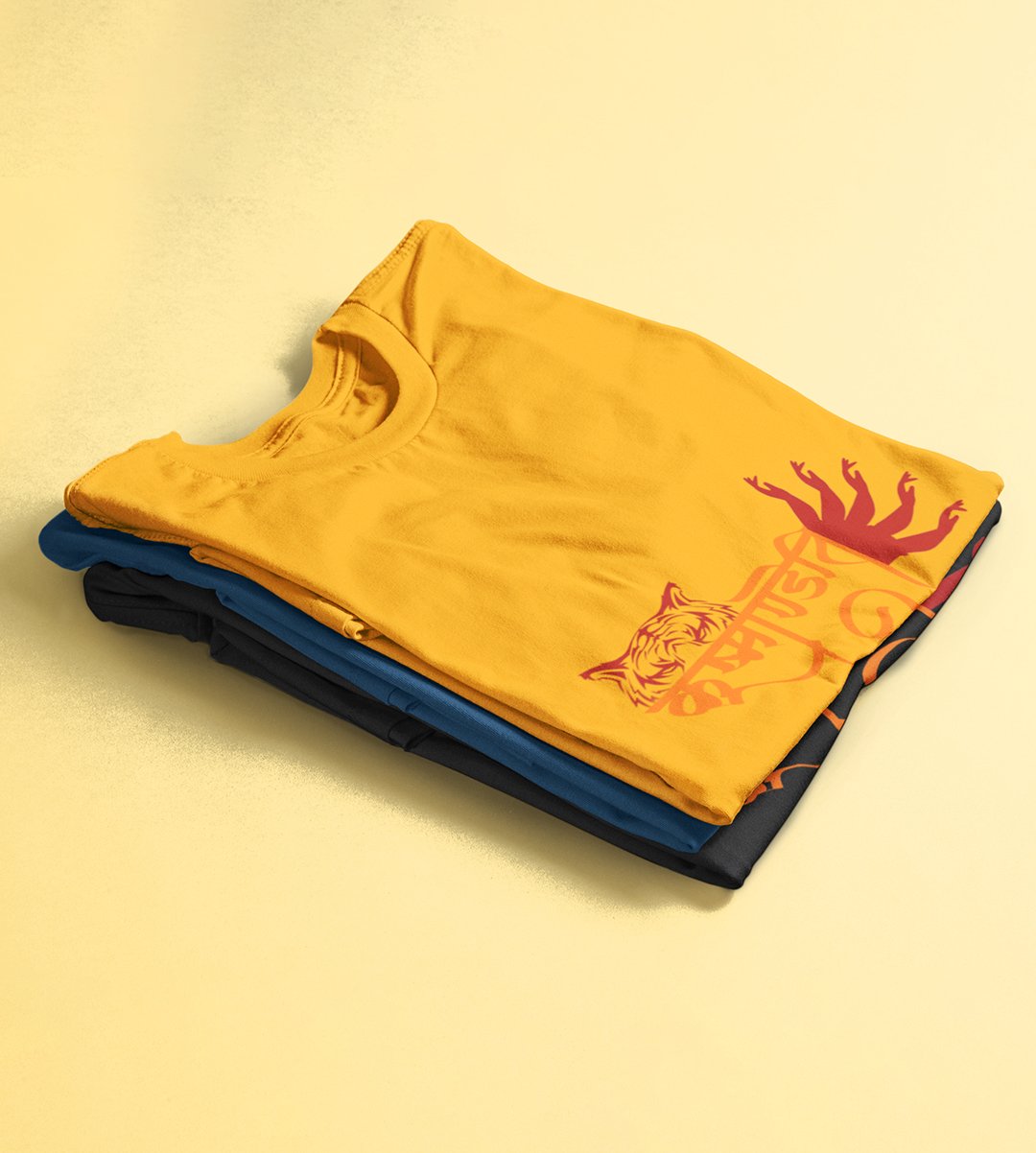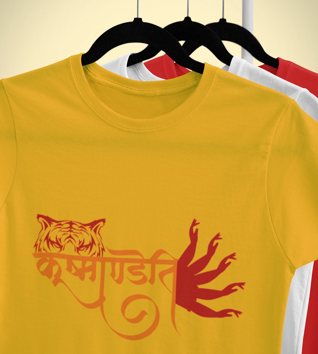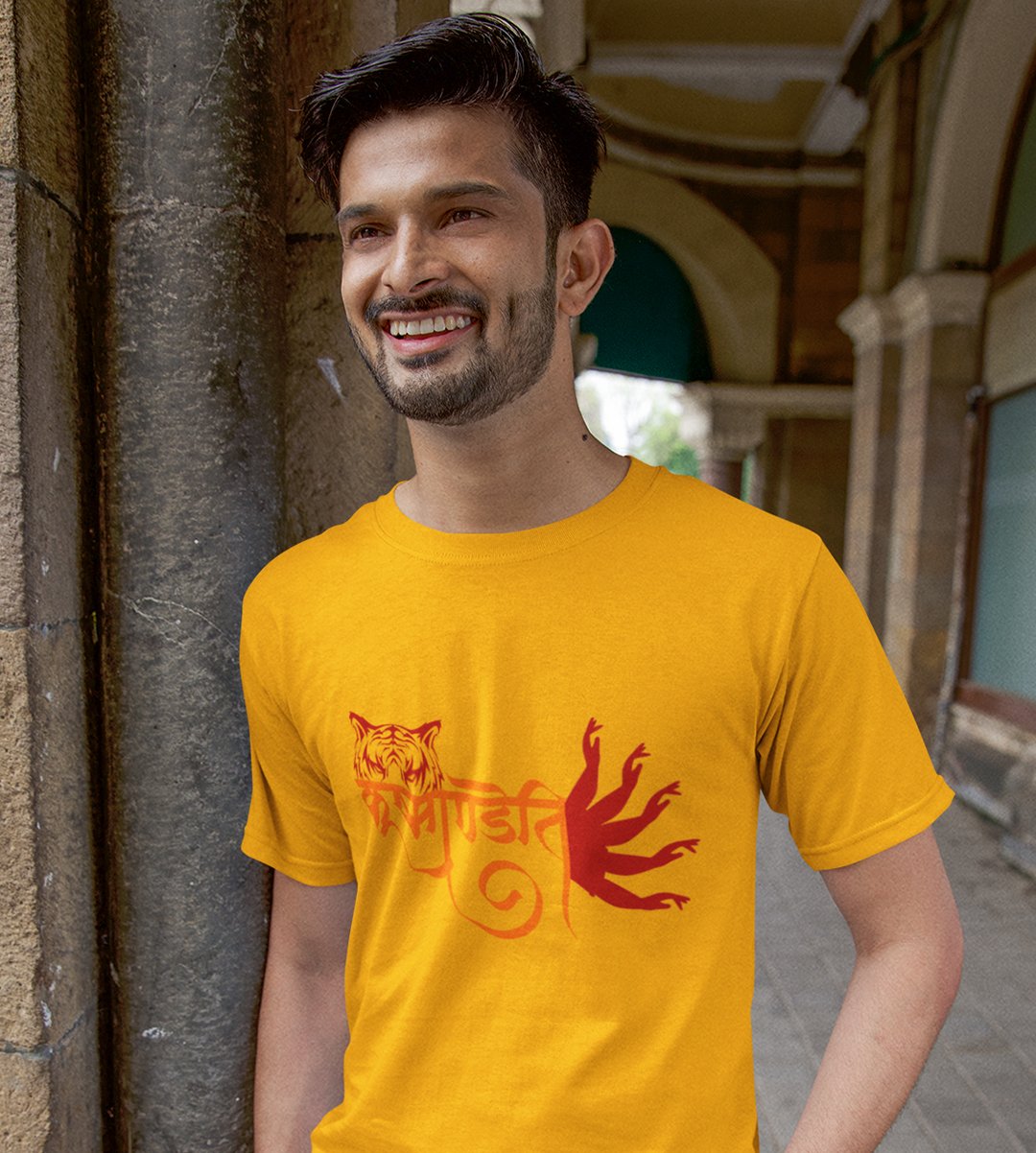 Navratri is a very auspicious festival for hindus. It takes place at the beginning of October and sometimes September. Enjoy the 9 days of festivities with full zeal and make yourself submerged in the love of Maa Durga. Navratri is also known as Durga Puja. And with this Tees, you can shine like a star during this festive season with our navratri themed cotton half sleeved Tshirts. You can pair our t-shirts with trousers and denim of your choice and make it a weekday smart casual or weekend wear. This is durable. This tshirt is smooth and soft which makes you comfortable to wear during all seasons. The printing in it is durable and odourless. It has five sizes, S,M,L,XL,XXL. The Tshirt colour is intact even after repeated washes. It can be kept in your wardrobe and hangers. Please avoid washing mashine to clean this Tee, it may affect the print. Hand wash only. We have brought you many navratri related designs printed on our different colour Tshirts to choose from. Grab it now.