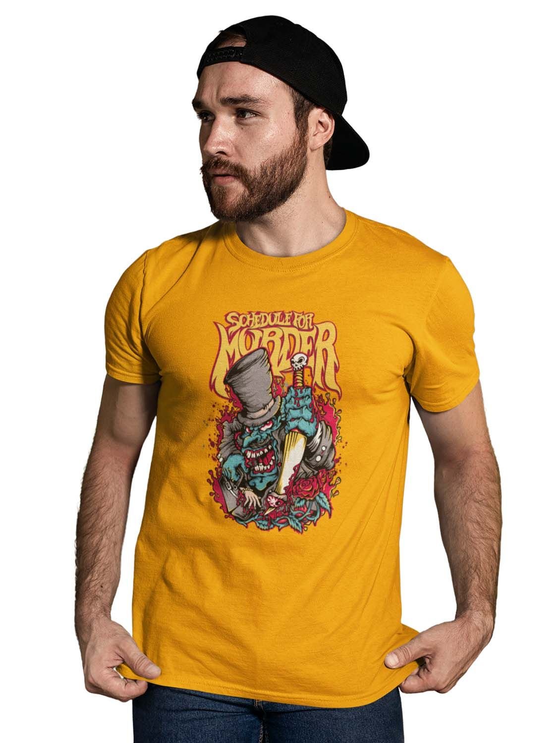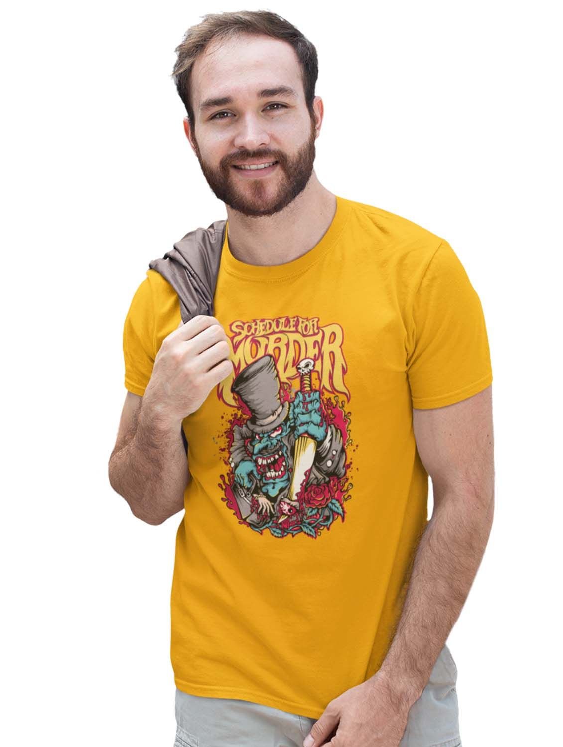 Schedule Murderer Yellow Round Neck Cotton Half Sleeved T-Shirt with Printed Graphics