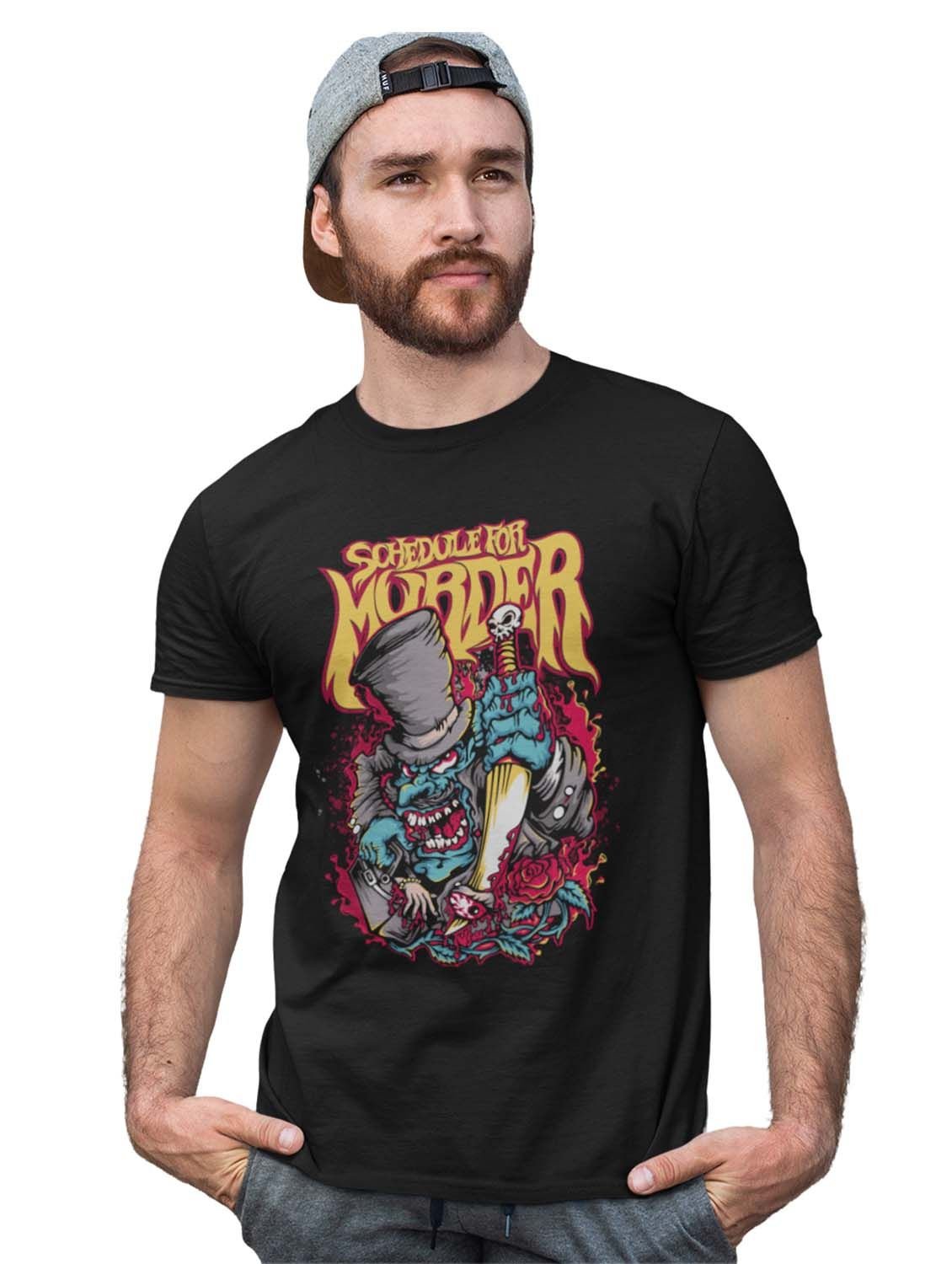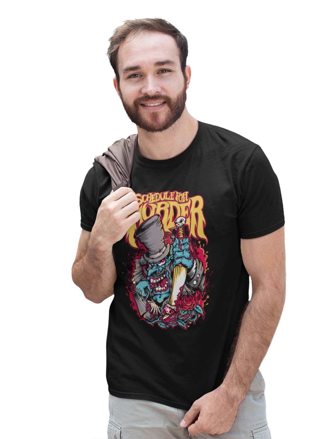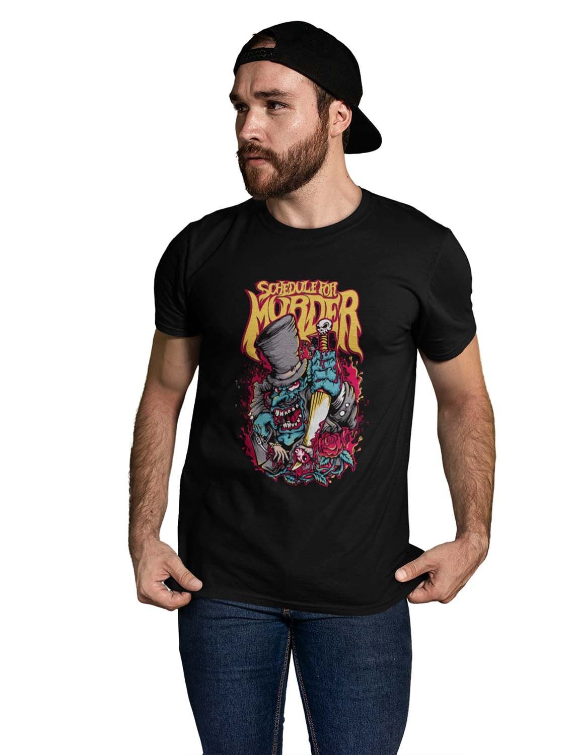 Schedule Murderer Black Round Neck Cotton Half Sleeved T-Shirt with Printed Graphics