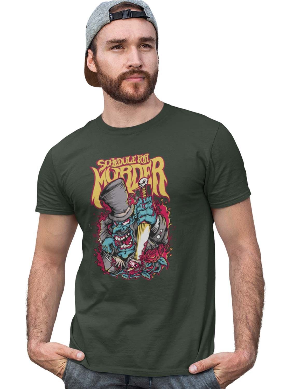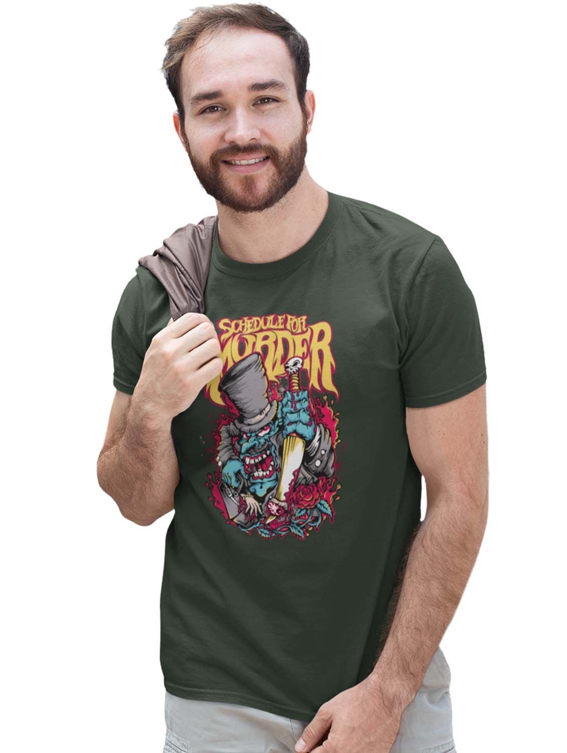 Schedule Murderer Green Round Neck Cotton Half Sleeved T-Shirt with Printed Graphics